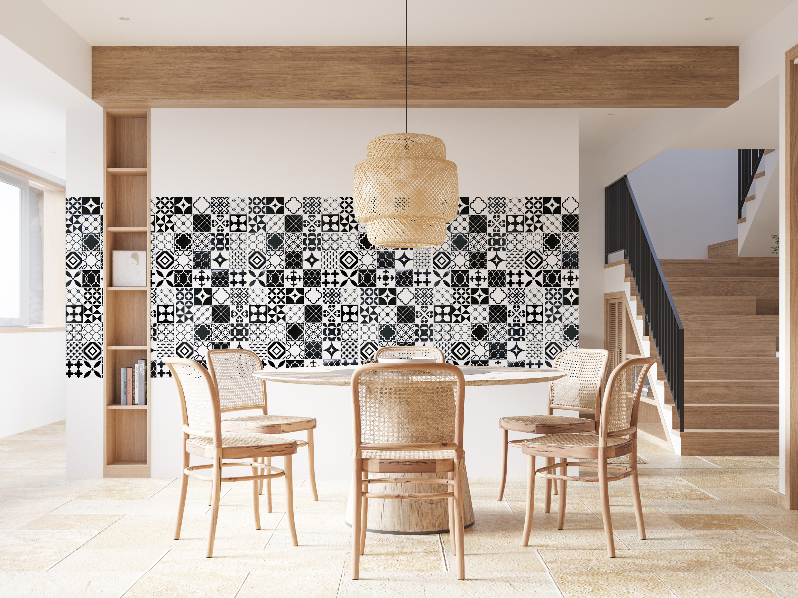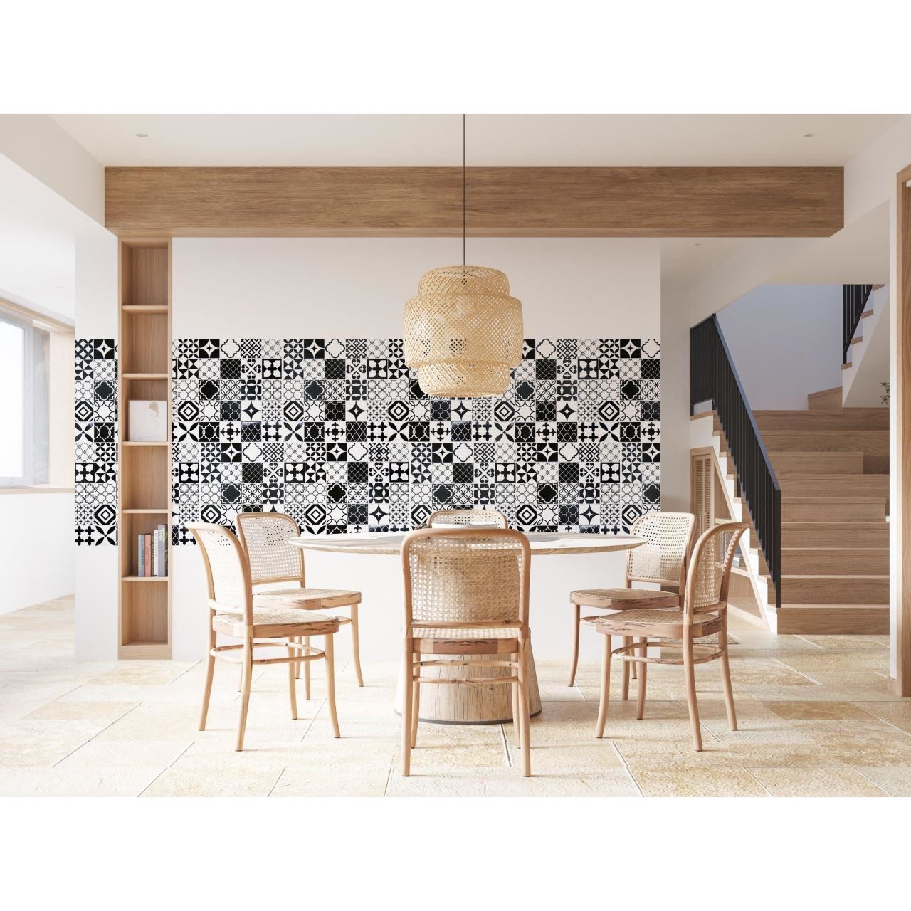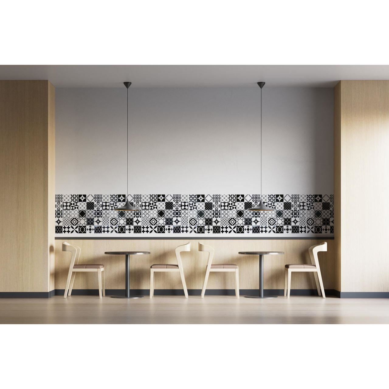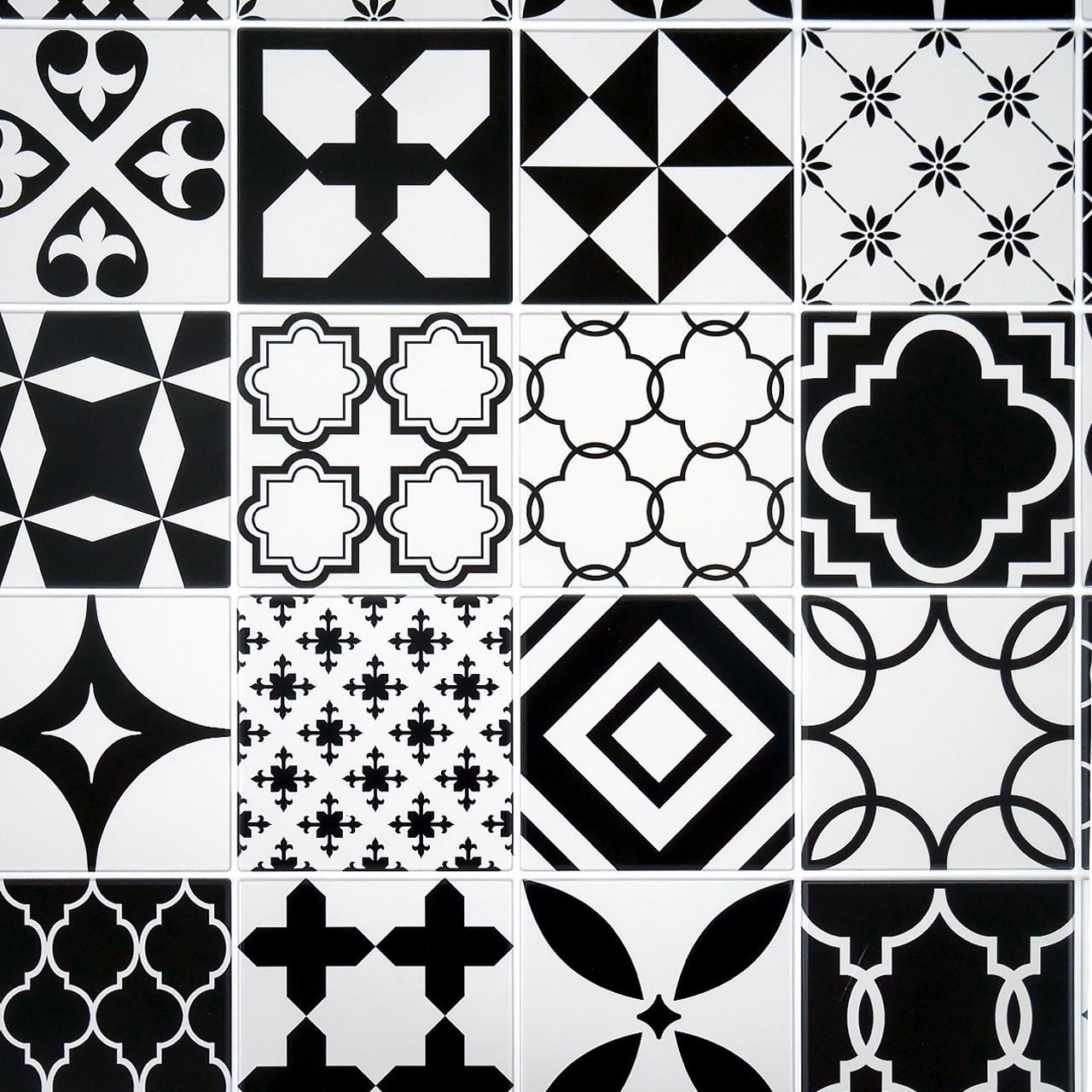 Dekoratív panel, PVC, mozaik mintás, fekete-fehér, 96x48,5cm