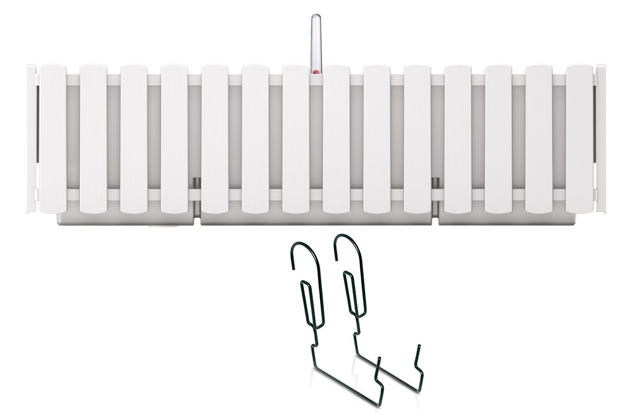 Dekoratív ültetőgép, fém tartó, öntözőrendszer, fehér, 58x18x16,2 cm, Boardee kerítéstartó W