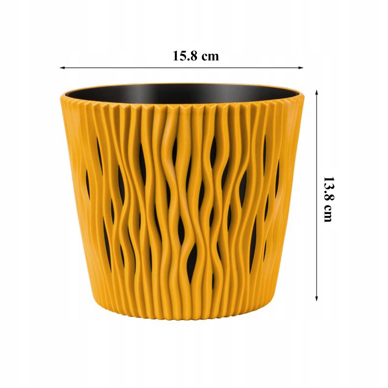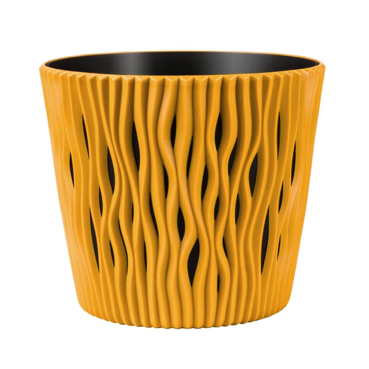 Dekoratív virágcserép, kerek 15,8x13,8 cm, sárga, Sandy