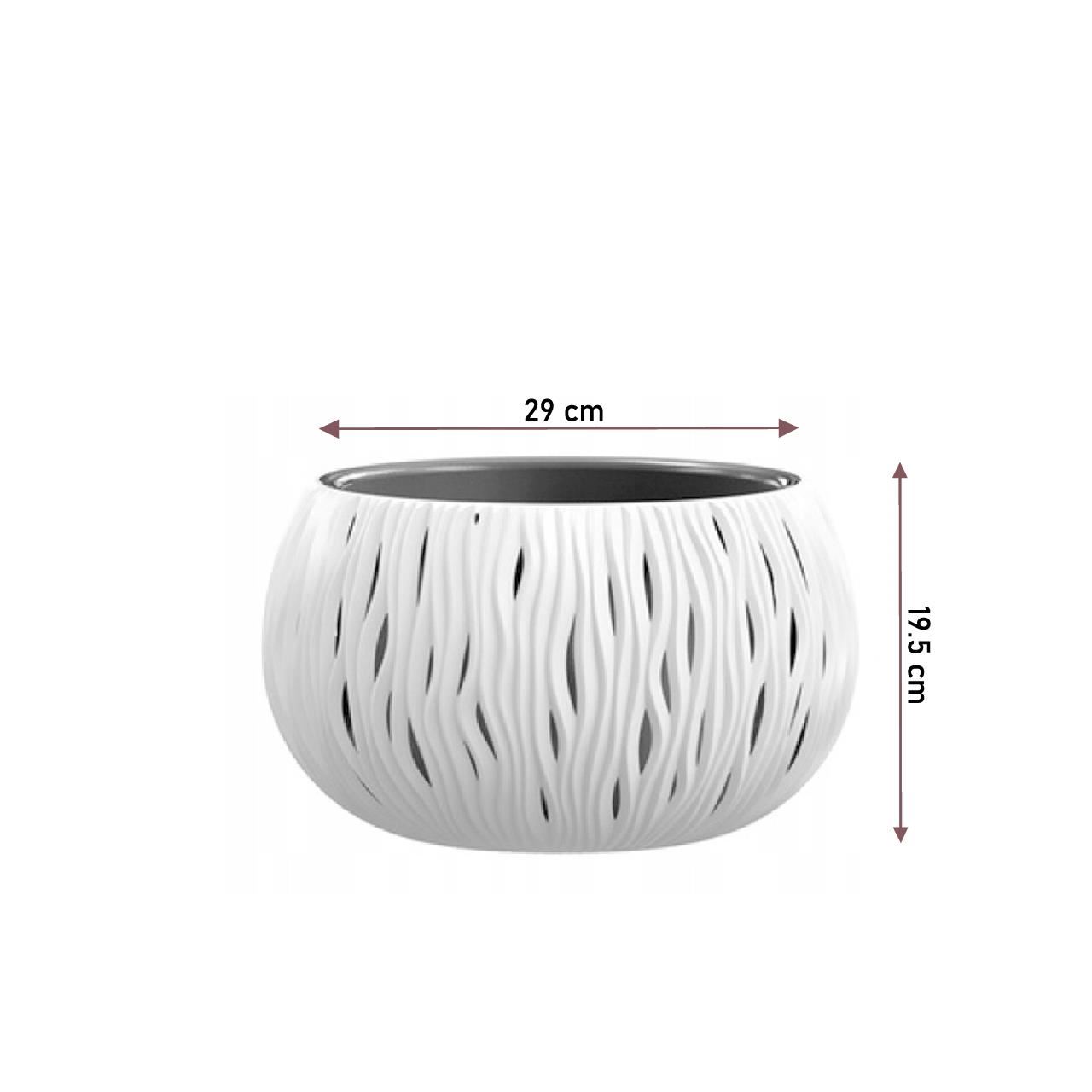 Dekoratív virágcserép, kerek, fehér, 29x19,5 cm, Sandy Bowl