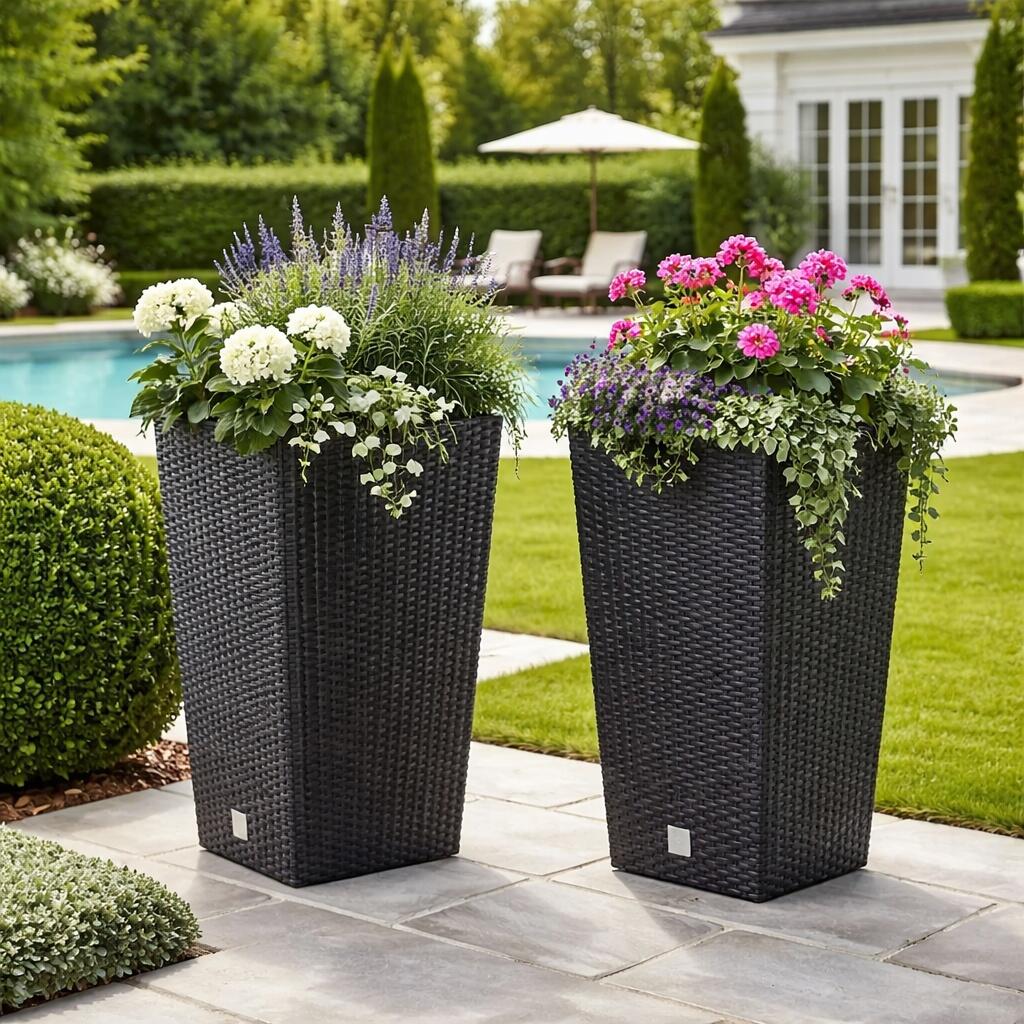 Dekoratív virágcserép, négyzet, 32,5x32,5x61 cm, rattan utánzat, antracit, Prosperplast