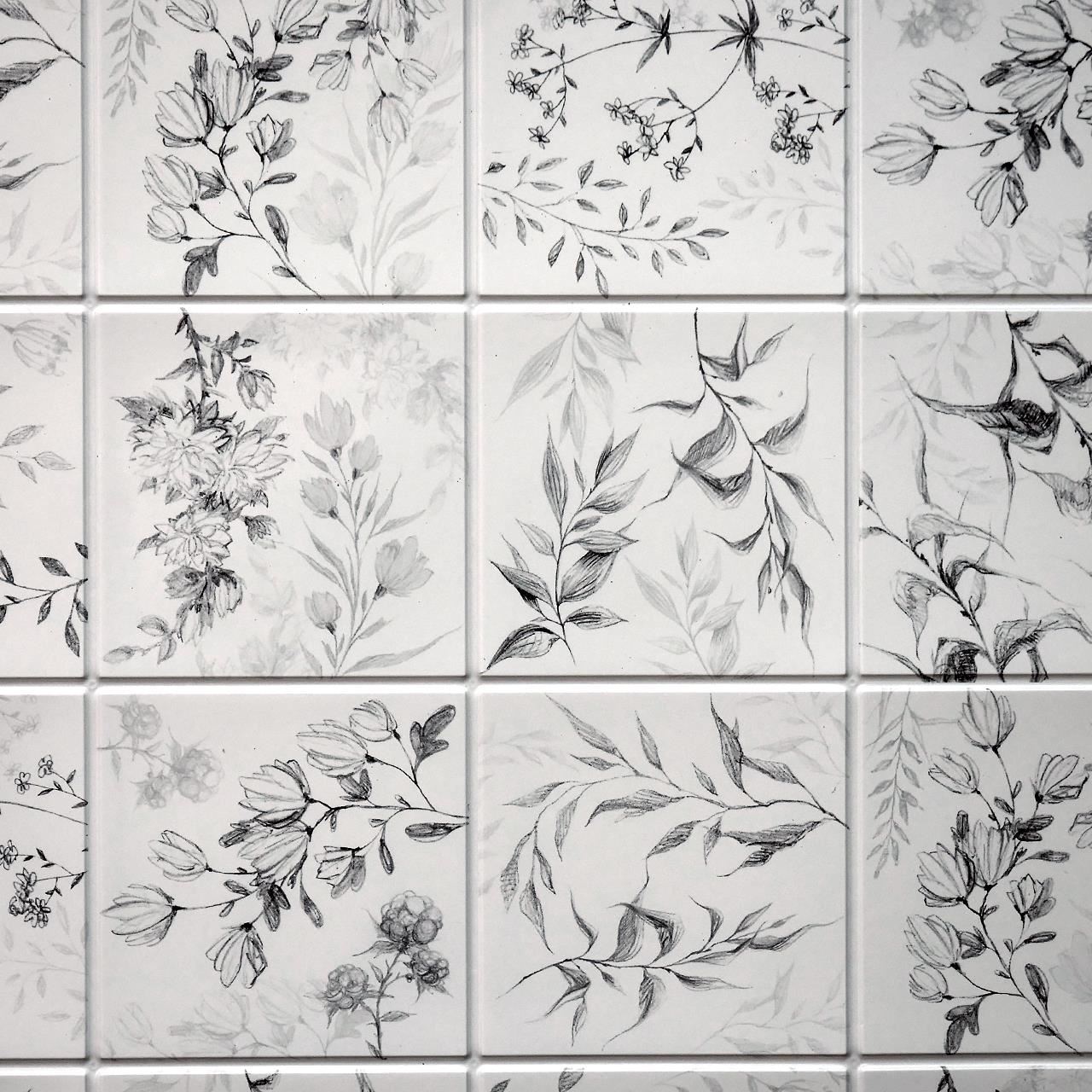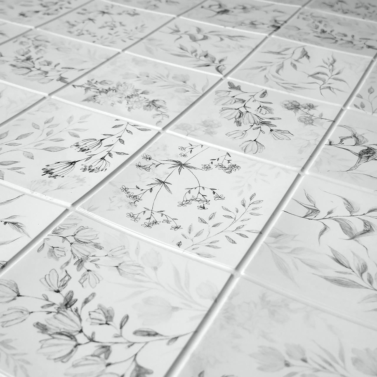Díszpanel, PVC, mezei virágmintás, szürke, 96x48,5 cm