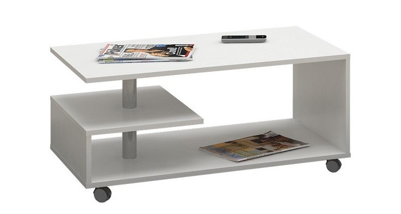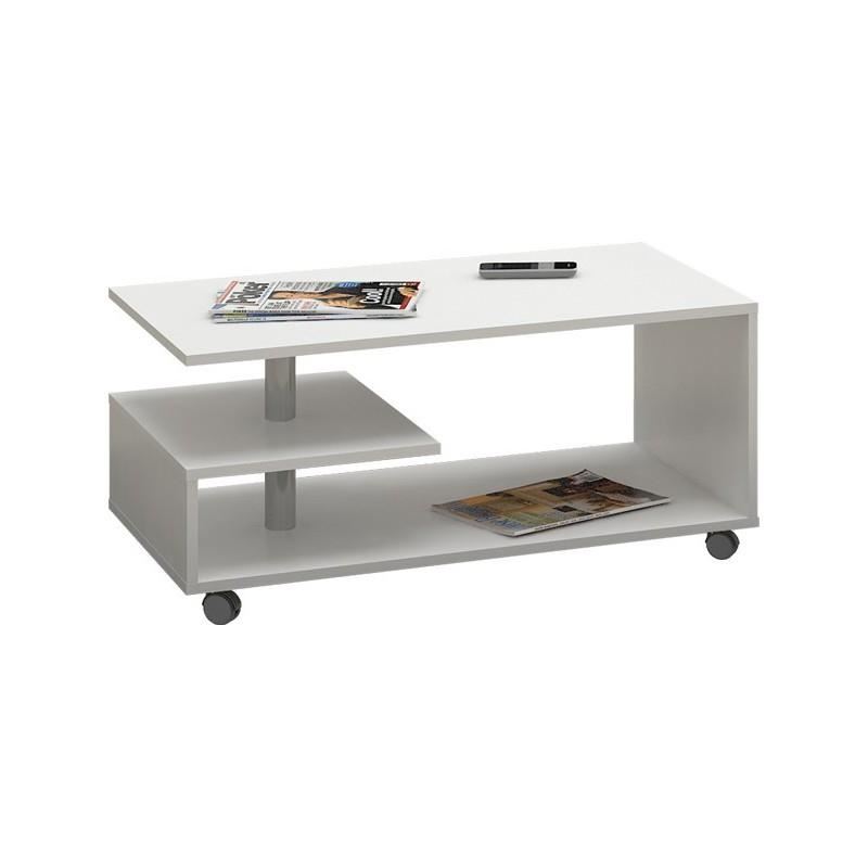 Dohányzóasztal, laminált tányér, kerekeken, fehér, 90x51x40 cm, Bor