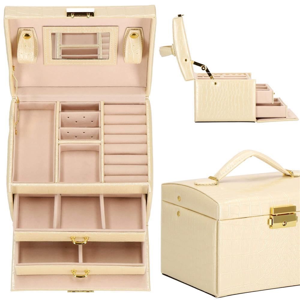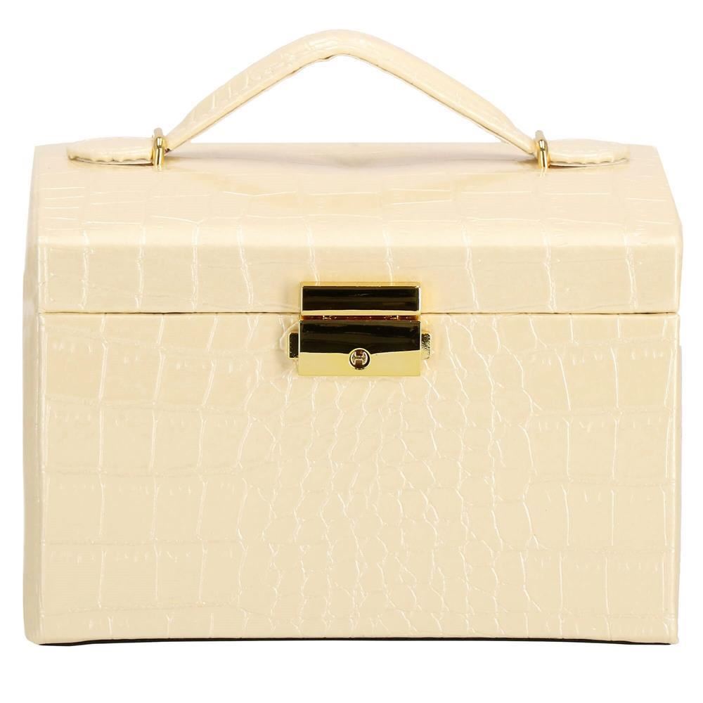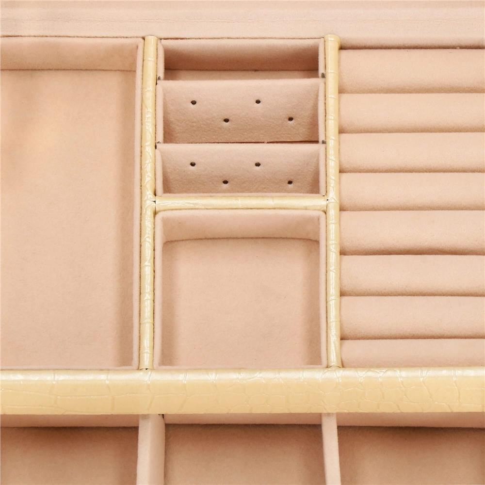 Ékszerdoboz, MDF, ökológiai bőr és velúr, krém és rózsaszín, tükörrel, 17,5x14x12,5 cm, Springos