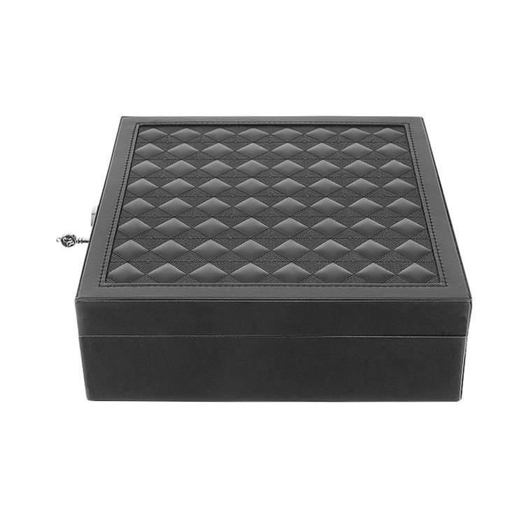 Ékszerdoboz, tükörrel, fekete, 25,5x25,5x9 cm