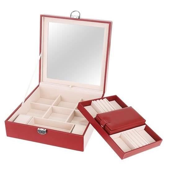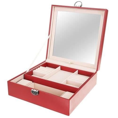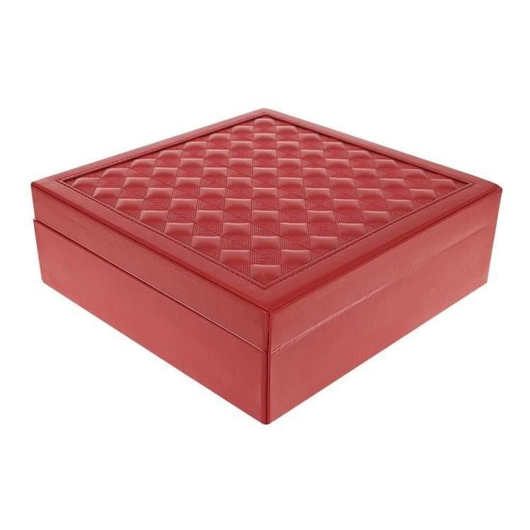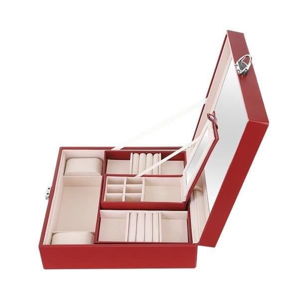 Ékszerdoboz, tükörrel, piros, 25,5x25,5x9 cm
