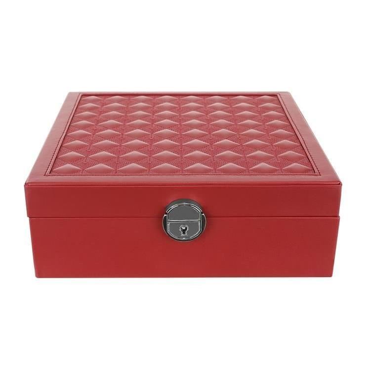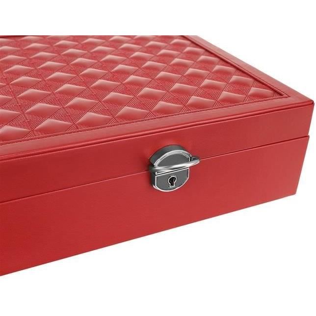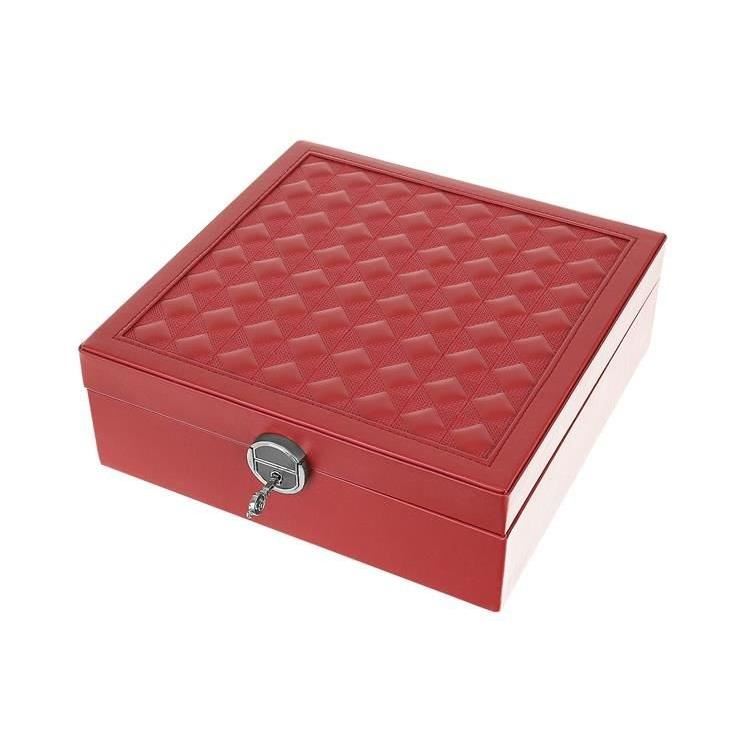 - NAGY KAPACITÁS - a doboz egy levehető borítóból áll, 2 rekesszel, gyűrűkkel ellátott görgőkkel, 4 rekesszel egyéb ékszerek számára, egy levehető dobozból. Alul 6 további rekesz található, 2 betét az óráknak vagy karkötőknek és 1 nagy, téglalap alakú rekesz a nagyobb tárgyaknak. A rekeszek puha anyaggal vannak bélelve, hogy megóvják a finom ékszereket a karcolásoktól.