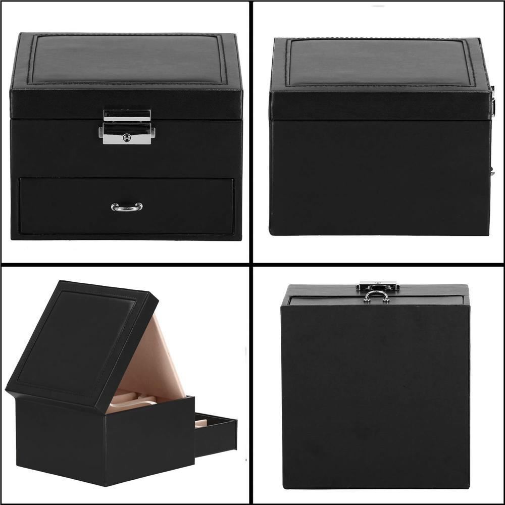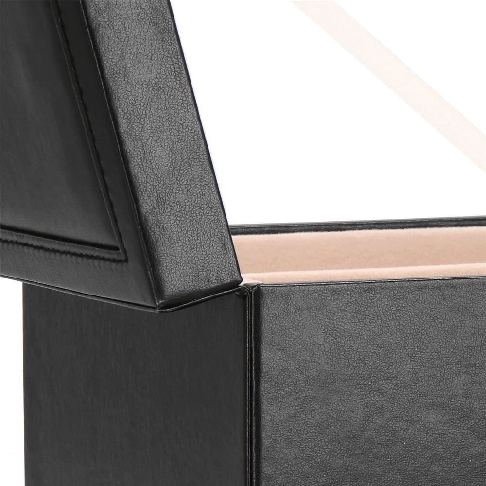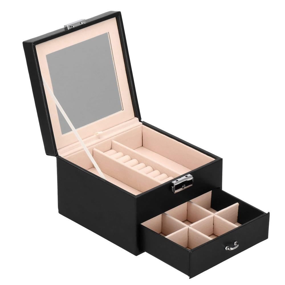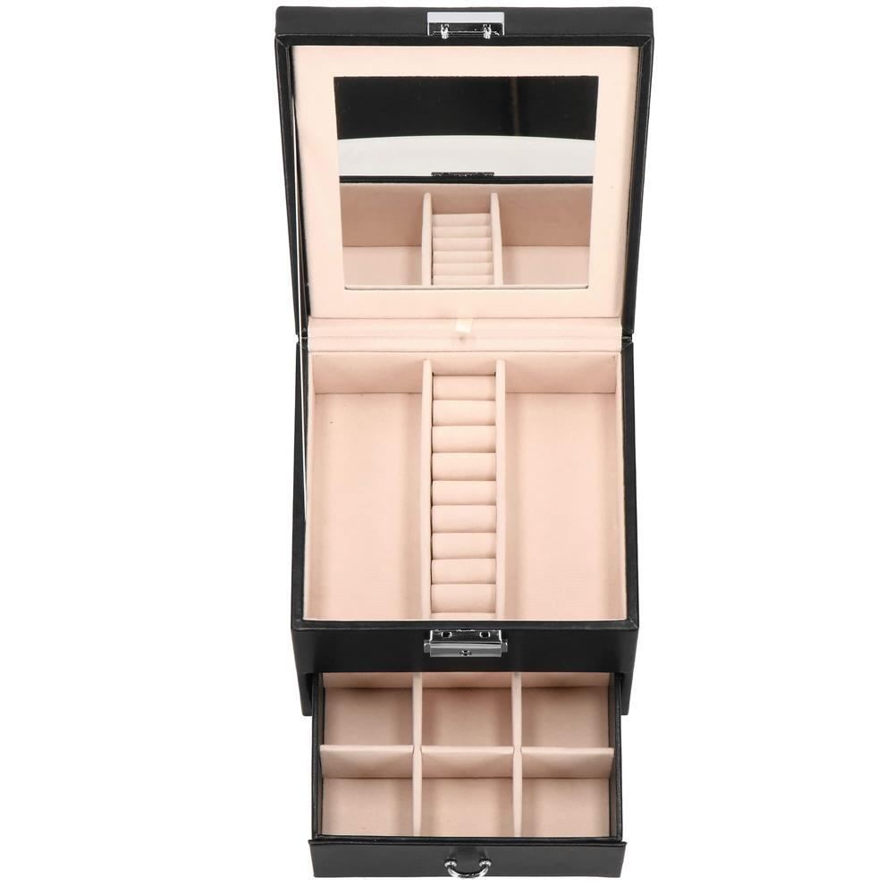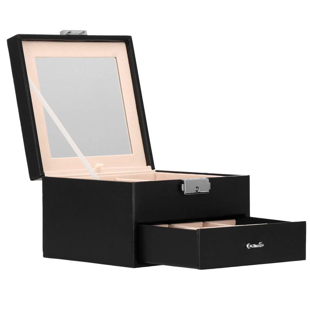 Ékszerdoboz, velúr és ökológiai bőr, fekete és rózsaszín, tükörrel, 16x16x11 cm, Springos