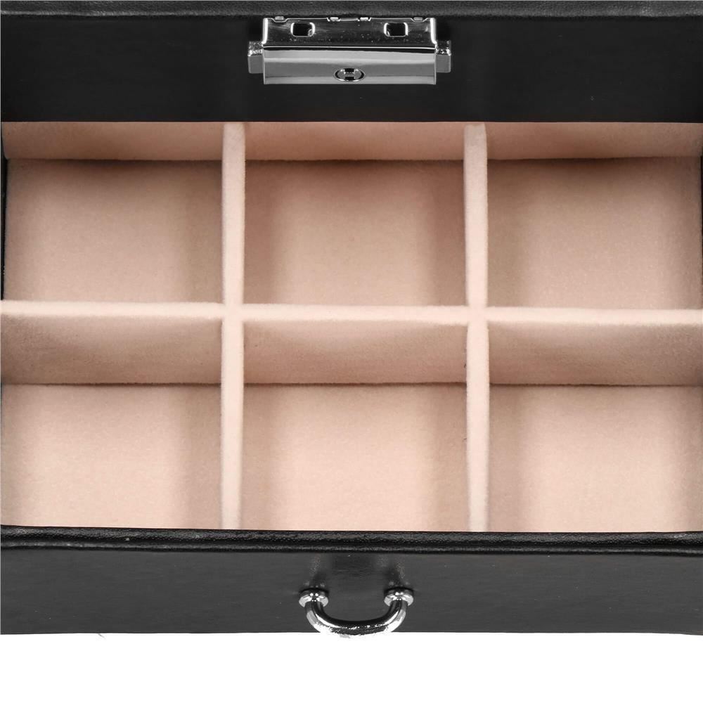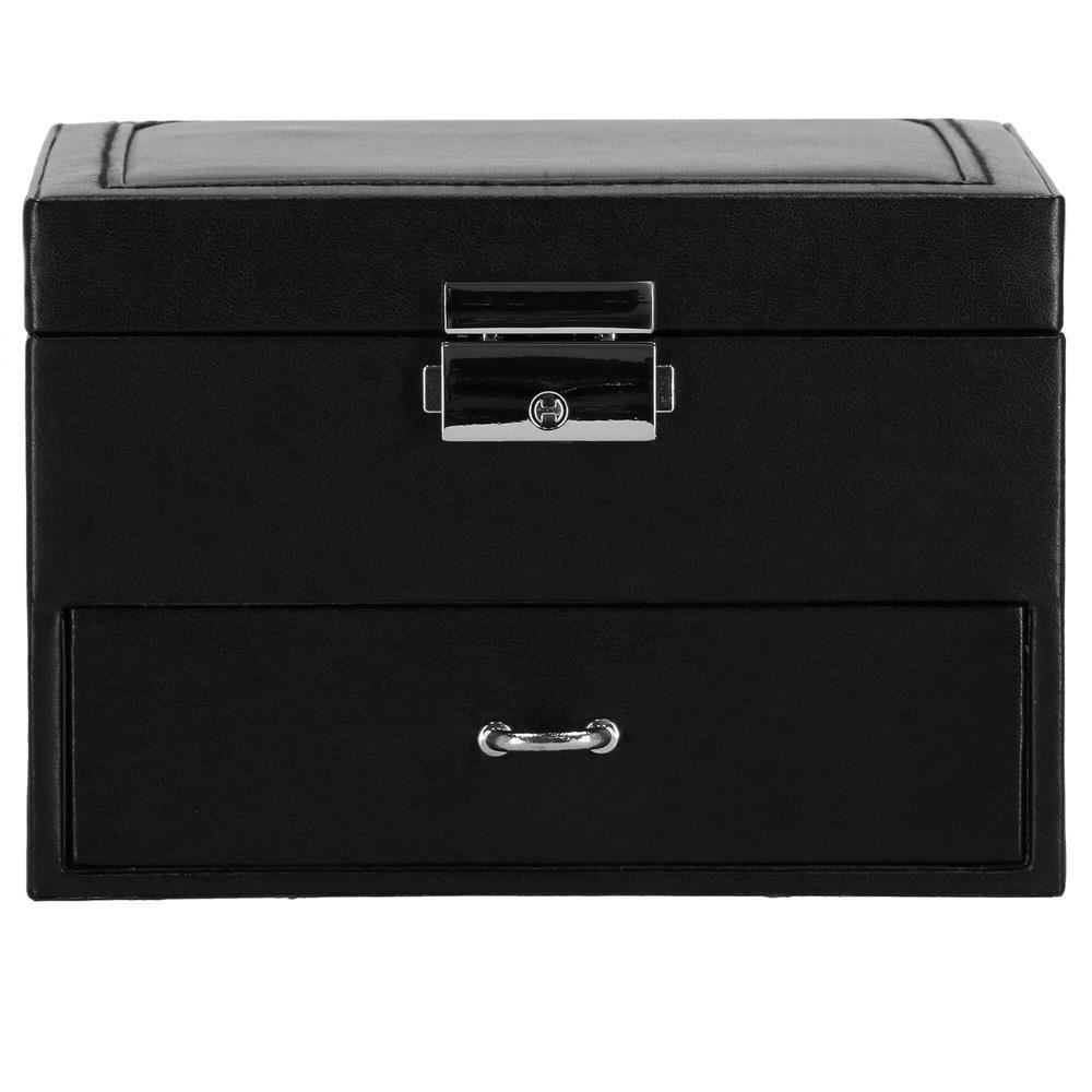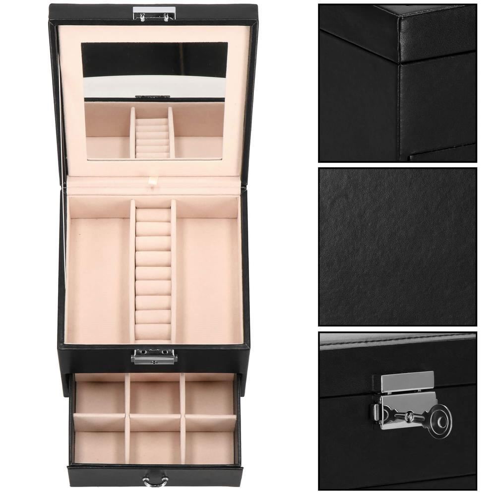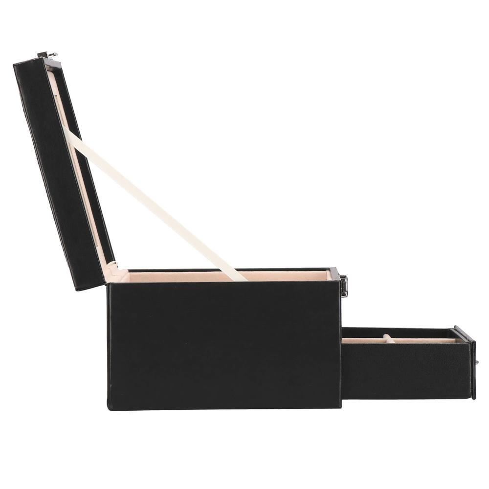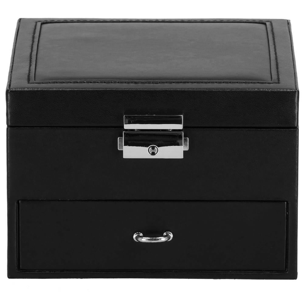 Ékszerdoboz, velúr és ökológiai bőr, fekete és rózsaszín, tükörrel, 16x16x11 cm, Springos