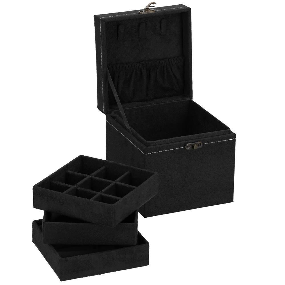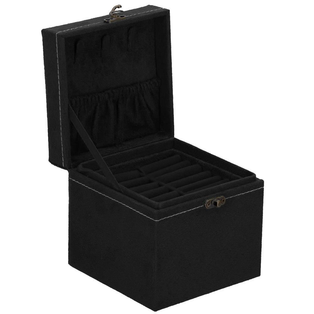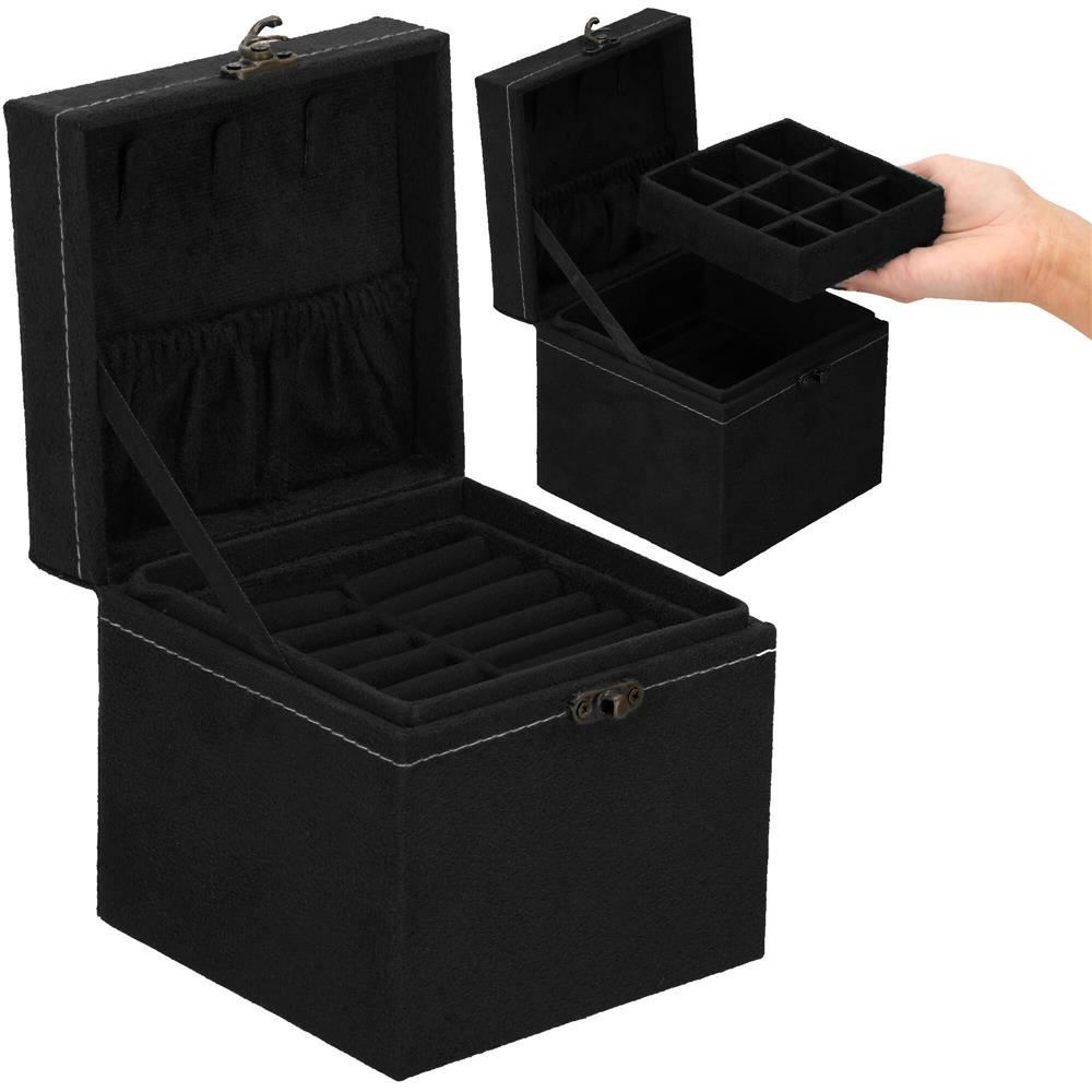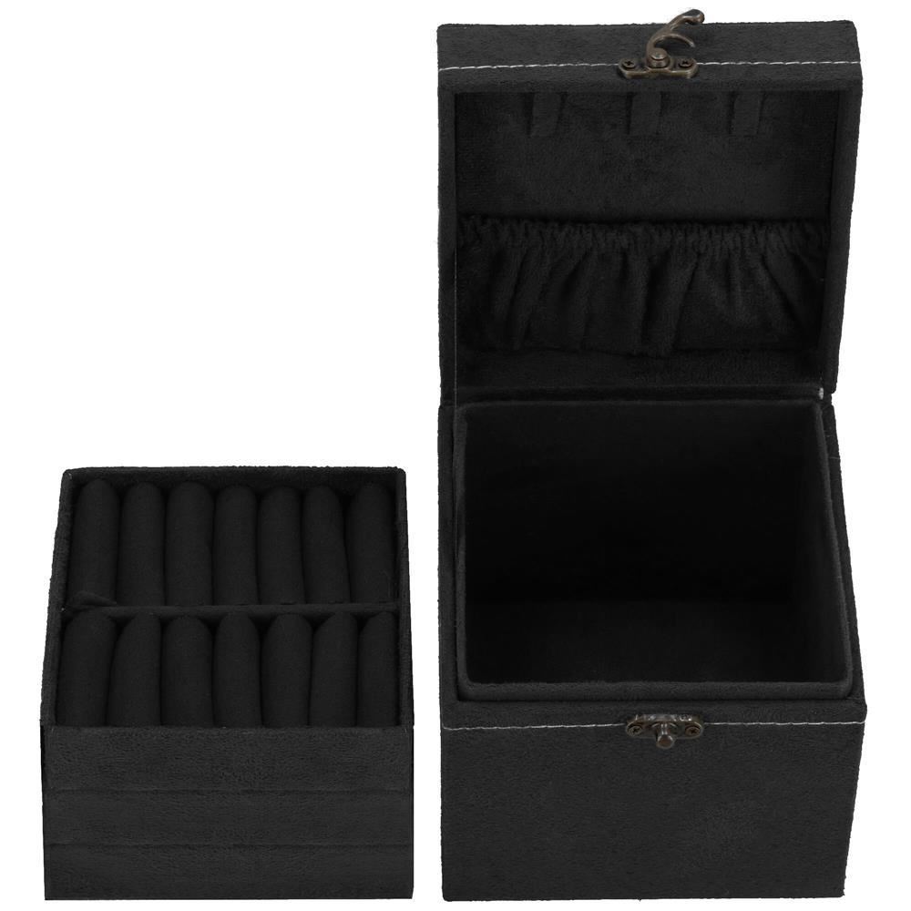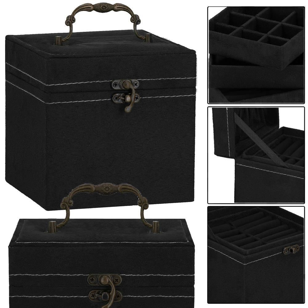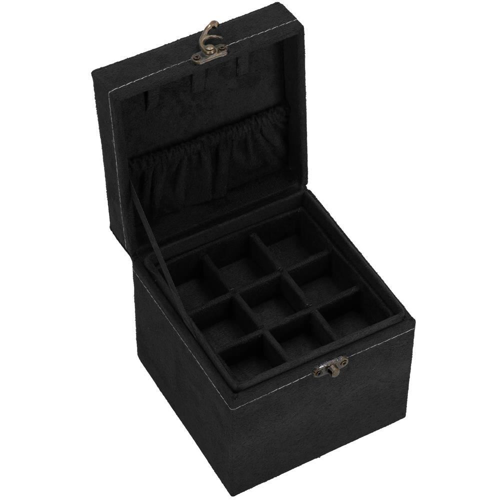 Ékszerdoboz, velúr, fekete, 12x12x12 cm, Springos