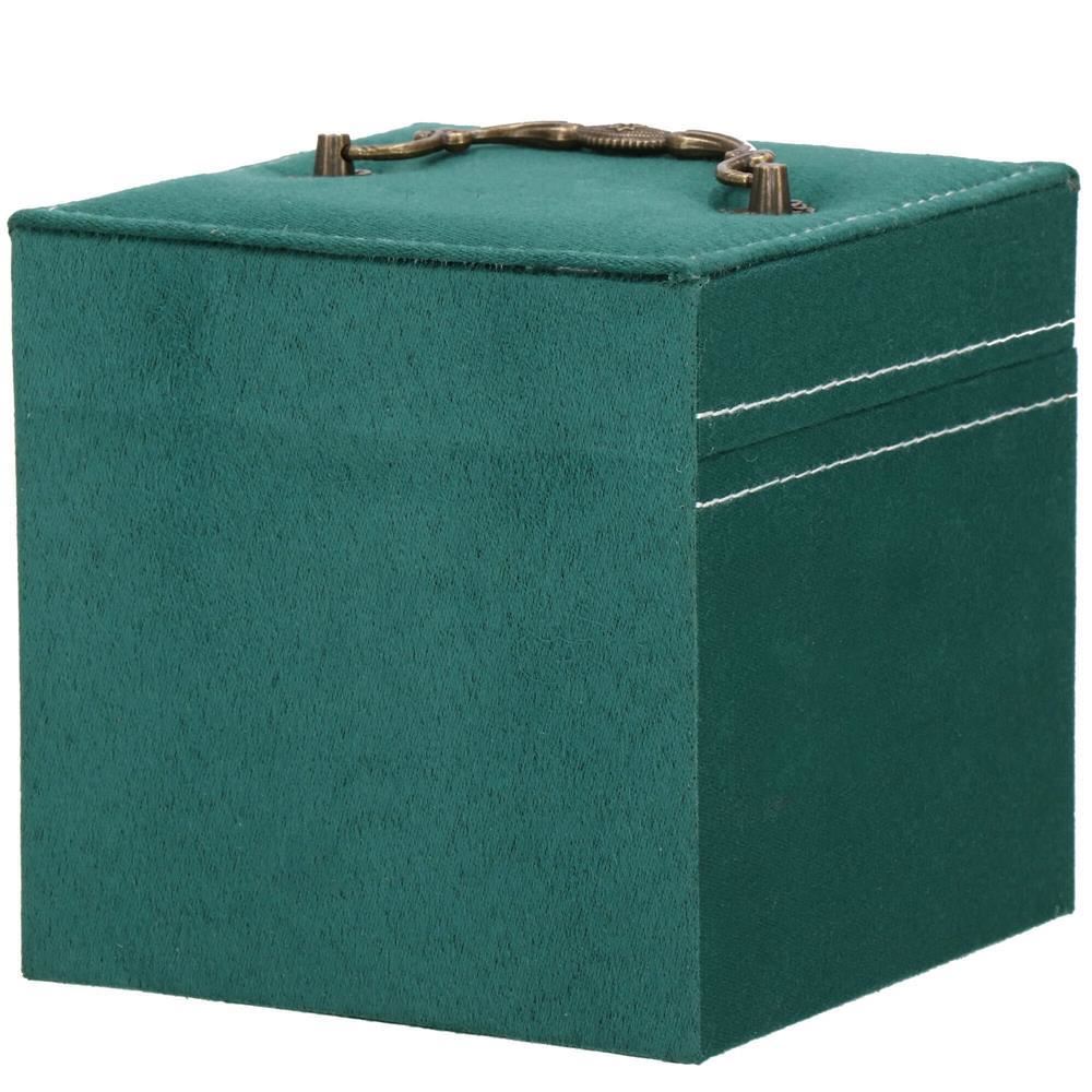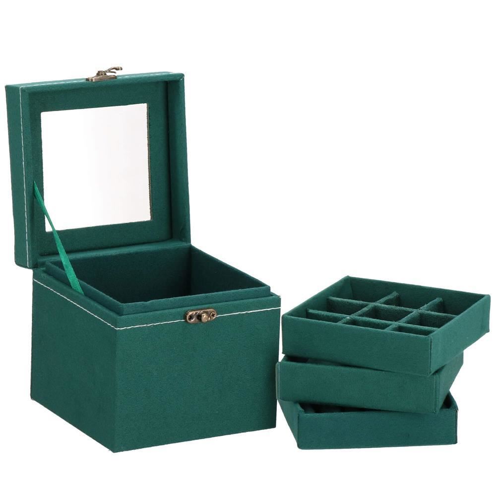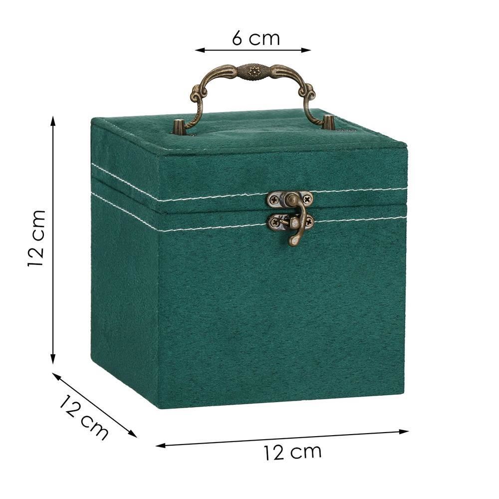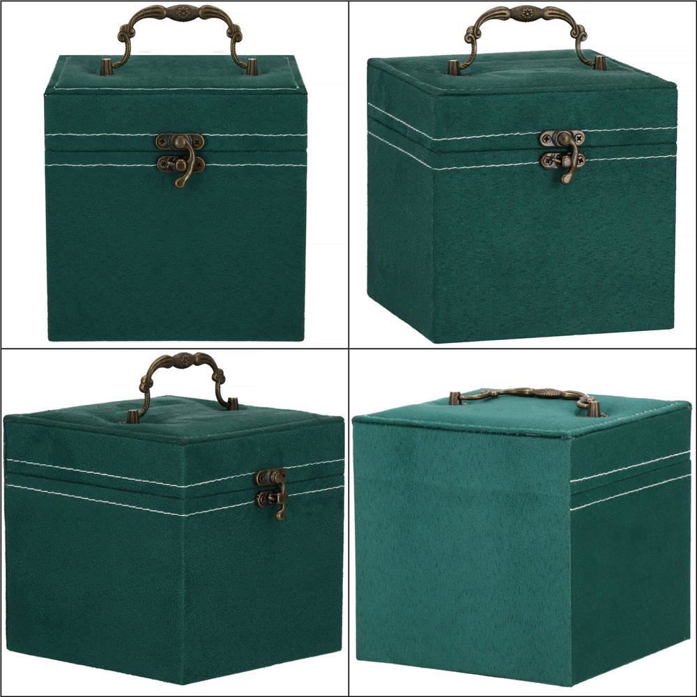 Ékszerdoboz, velúr, zöld, tükörrel, 12x12x12 cm, Springos