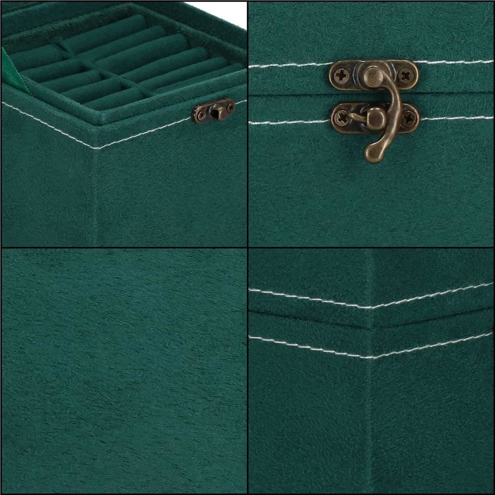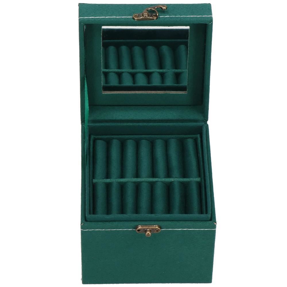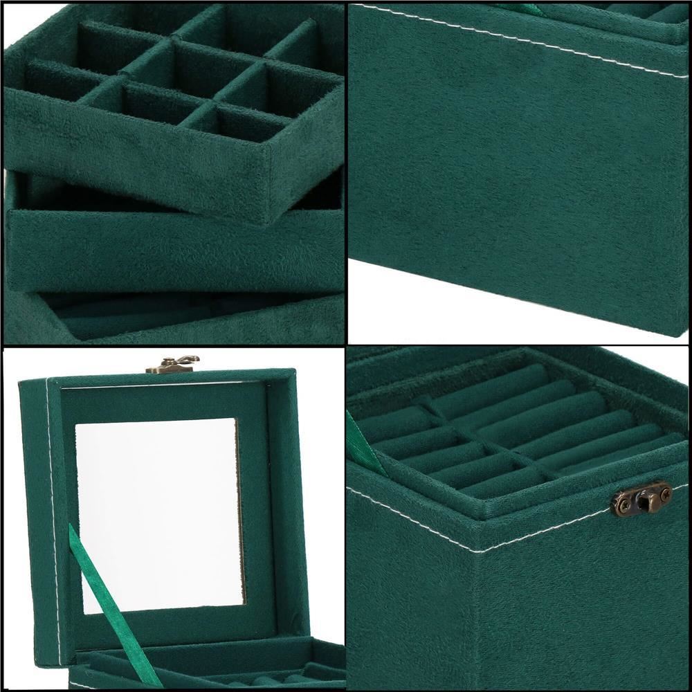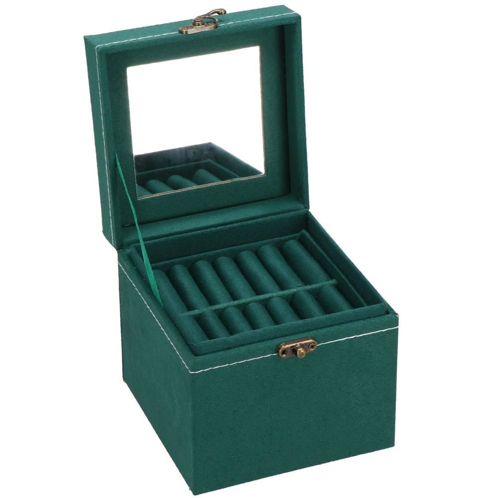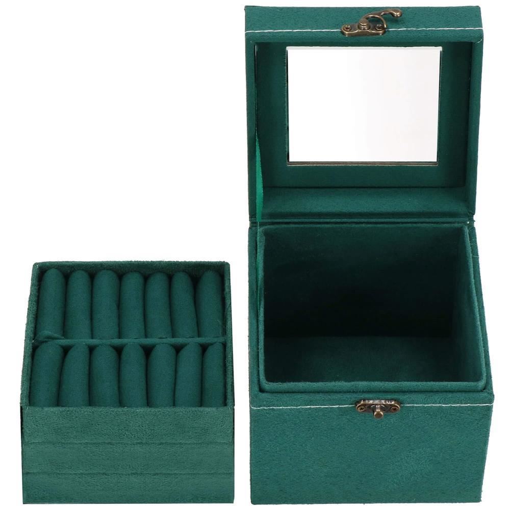 Ékszerdoboz, velúr, zöld, tükörrel, 12x12x12 cm, Springos