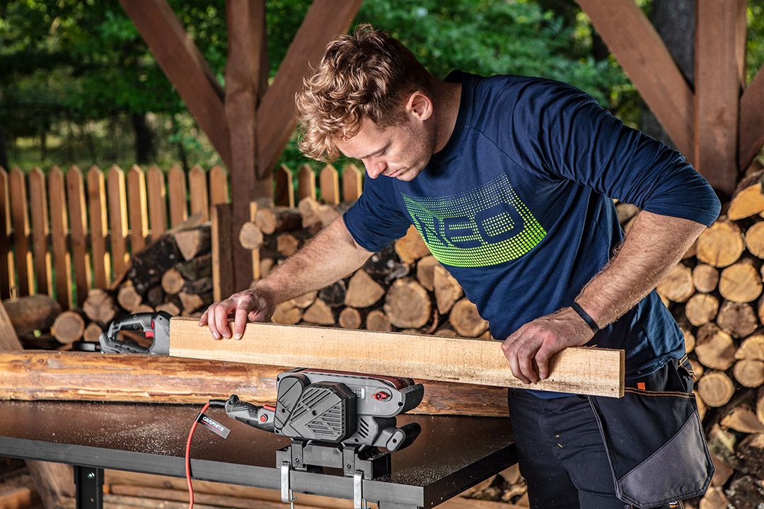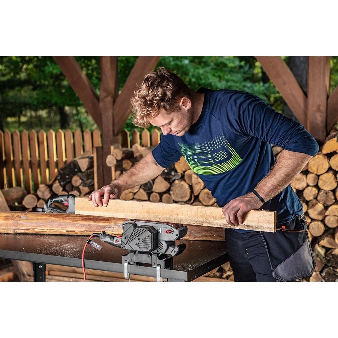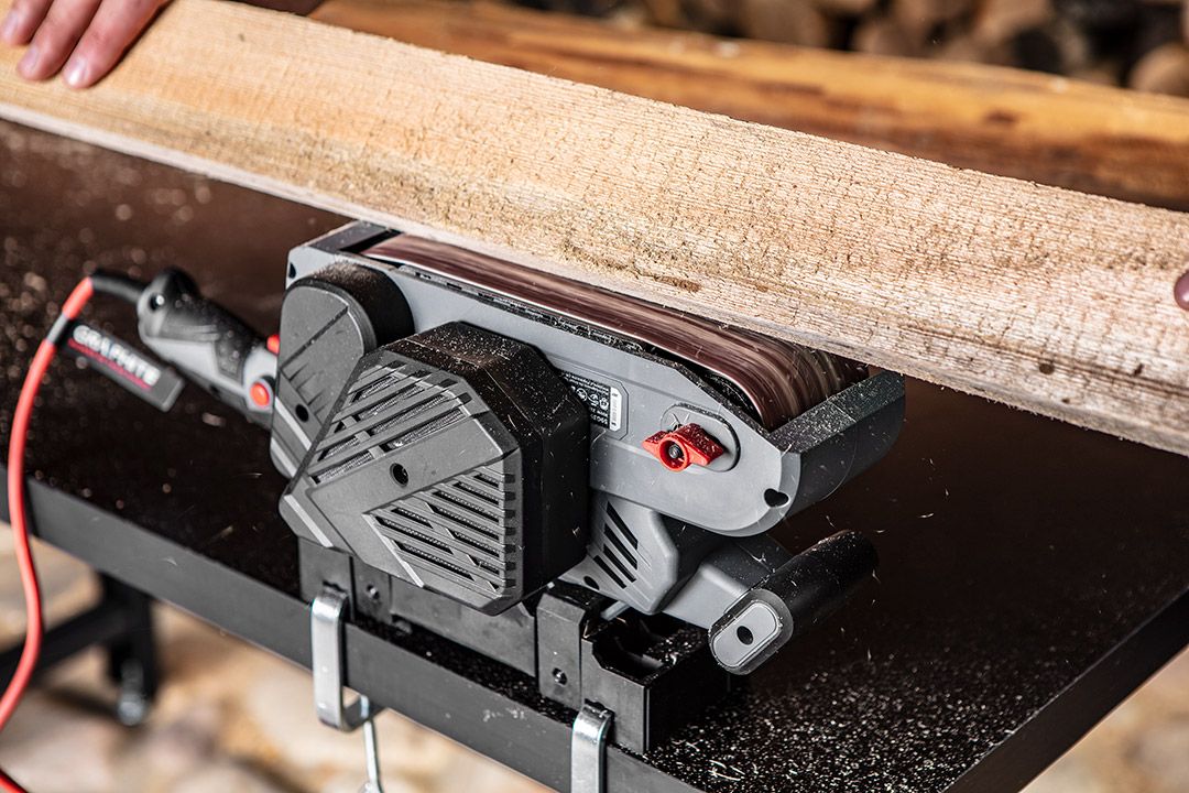 A Graphite szalagcsiszoló  -vel rendelkezik; 900 W teljesítményű és fafeldolgozásra és a fához, fémhez és műanyagokhoz hasonló anyagokhoz készült.