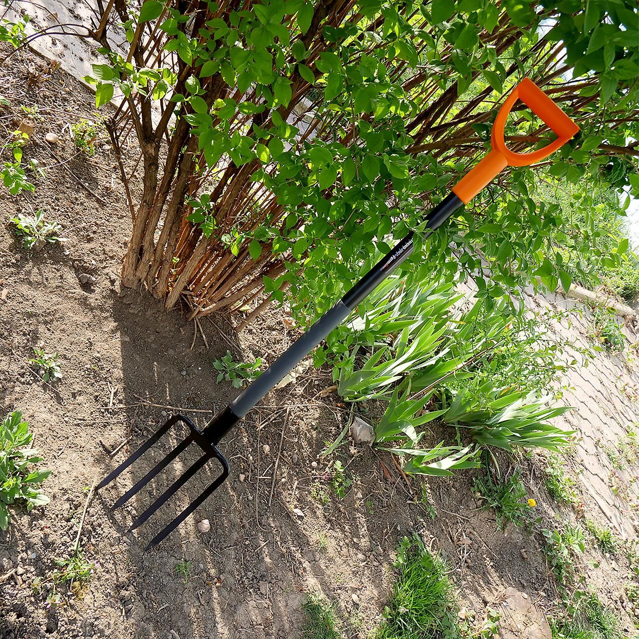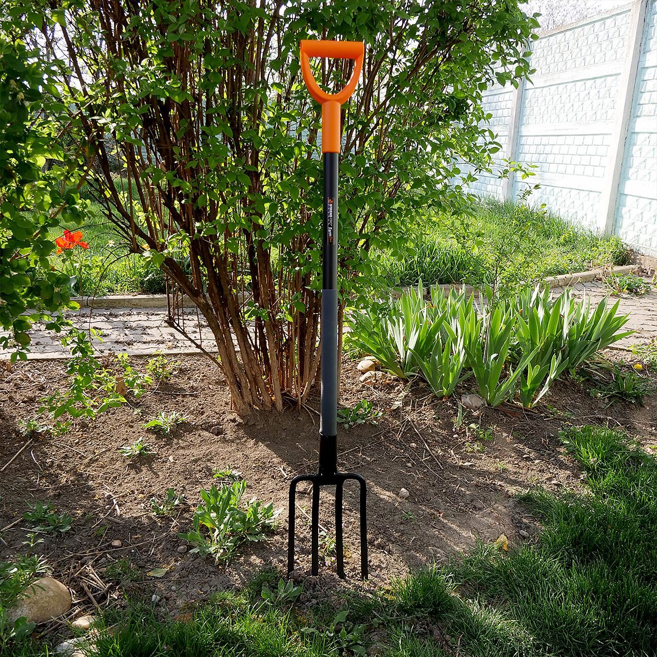 Ásóvilla, 122cm, 4 fogú ErgoLine.Fém farok. Elegáns kialakítás és kényelmes fogantyú, tökéletes kerti munkákhoz.