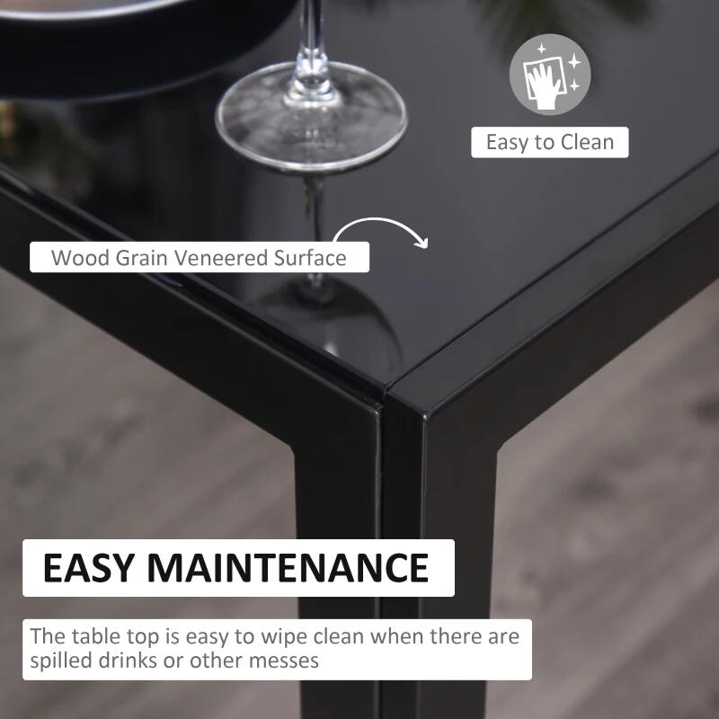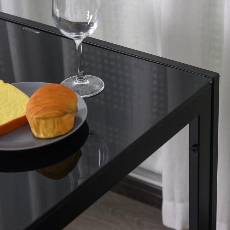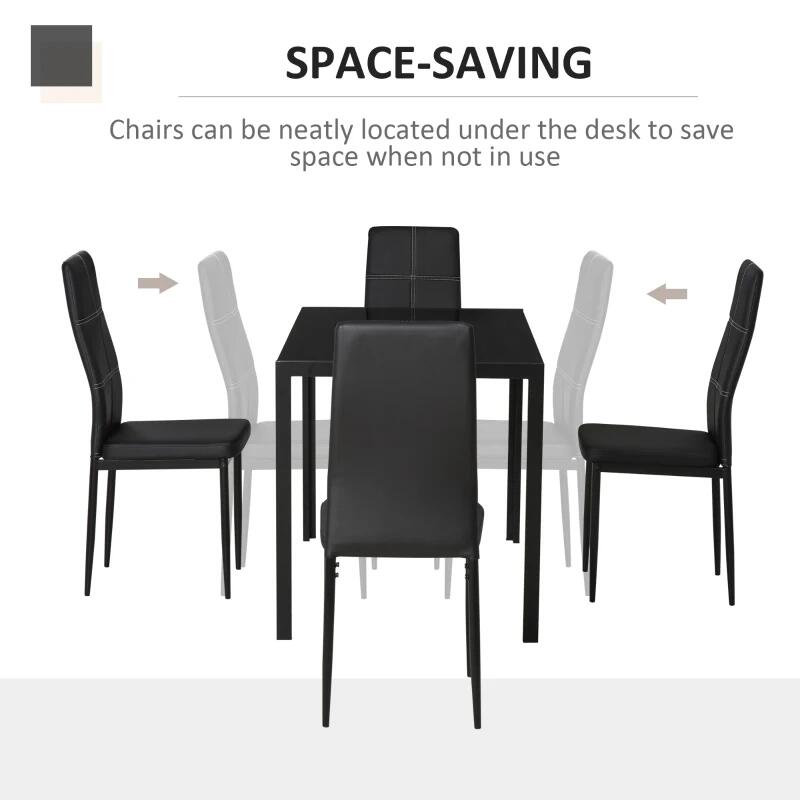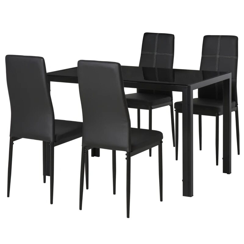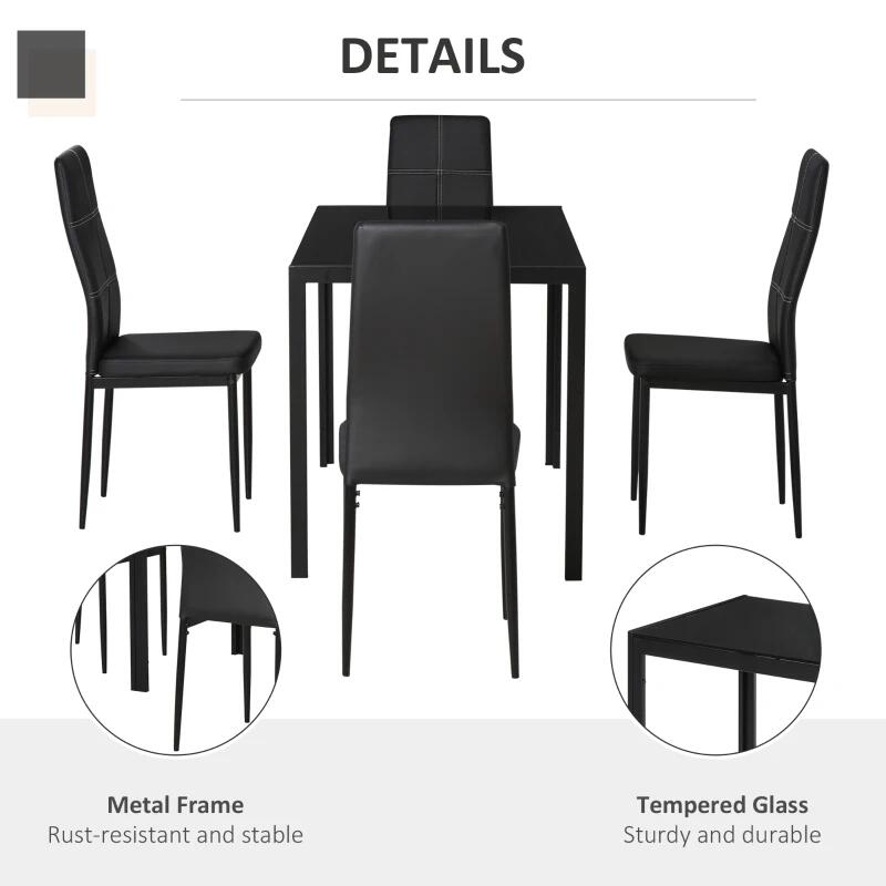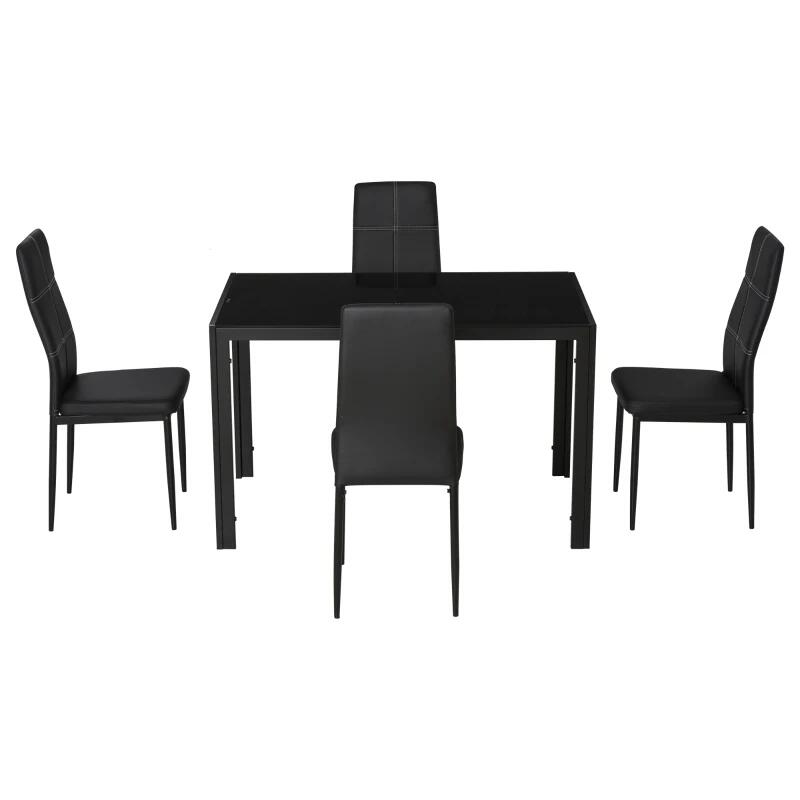 Étkező/konyhaasztal + 4 szék, fém, PU bőr, üveglap, fekete, 120x70x75 cm