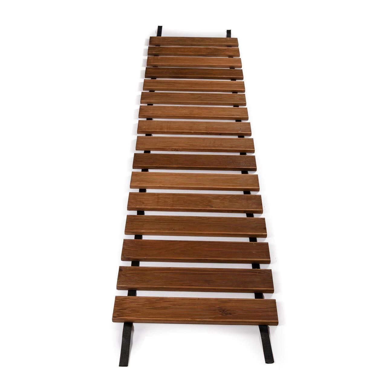 - A 3,5 cm-es távolságra (8 db méterenként) elhelyezett fa deszkáknak köszönhetően kényelmes és biztonságos az átjárás