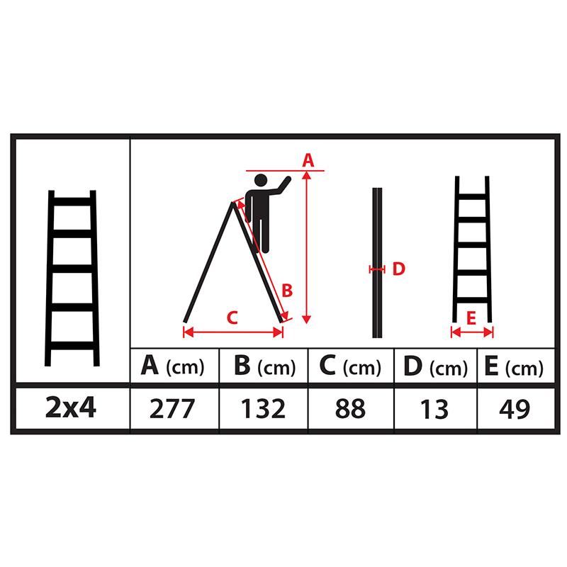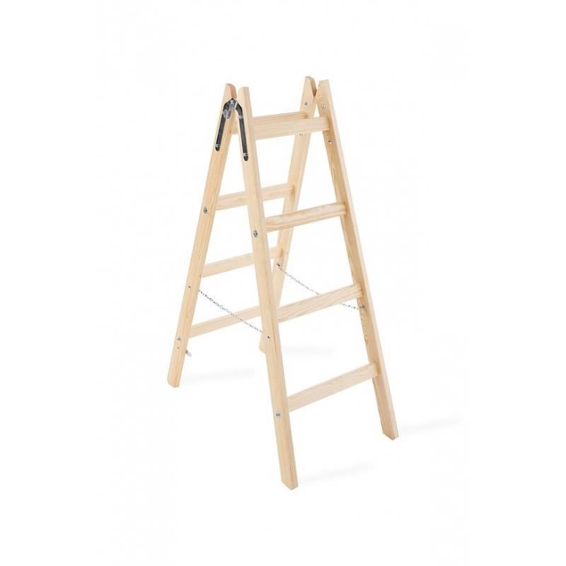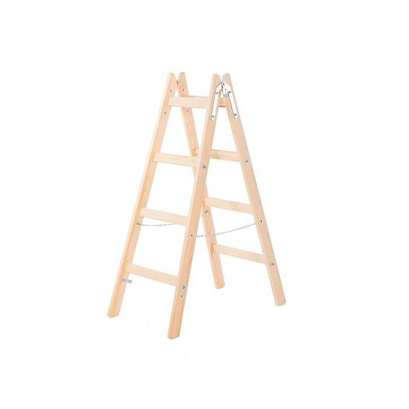 A 4 lépcsős fa dupla lépcsőt masszív és stabil felépítés jellemzi, amely garantálja a biztonságos munkavégzést a magasban.