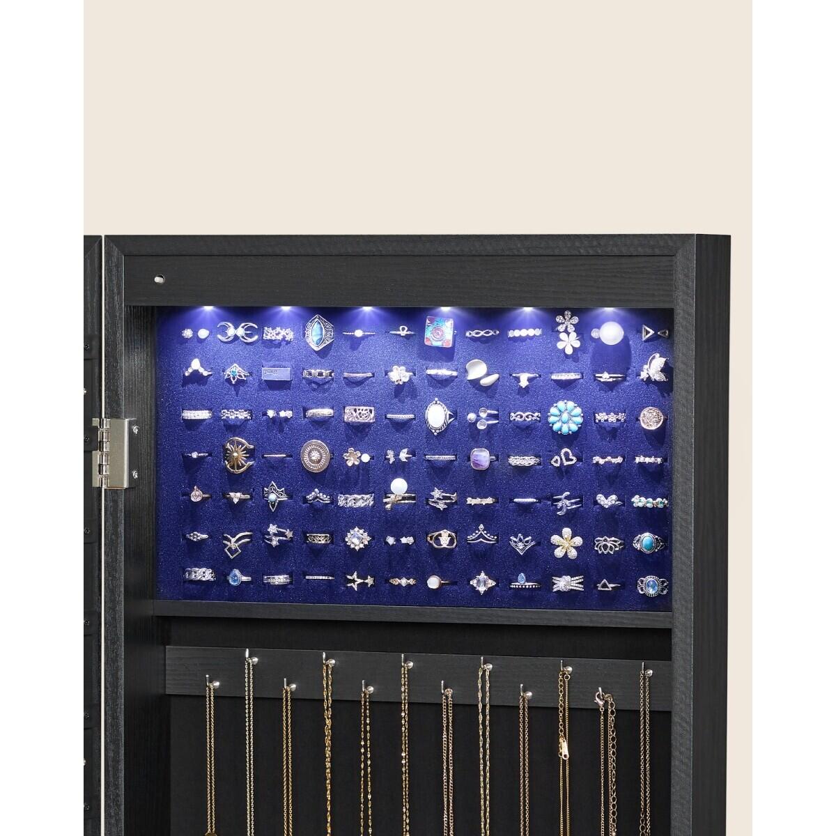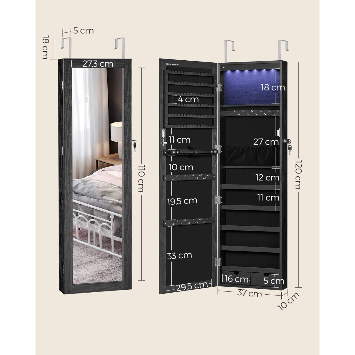 Fali szekrény tükörrel ékszerekhez, Artool, MDF, alsó polc, fekete, 37x10x120 cm
