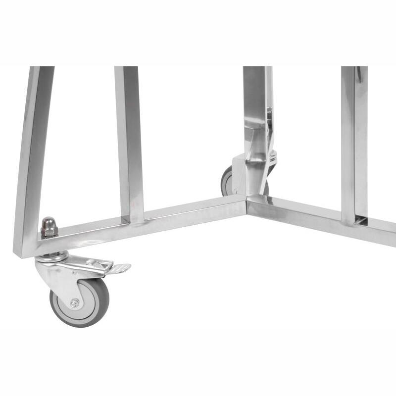 - Rozsdamentes acél tartó - biztosítja az egész szerelvény stabilitását és 3 kerékkel van felszerelve a gyorsabb és könnyebb mozgás érdekében.