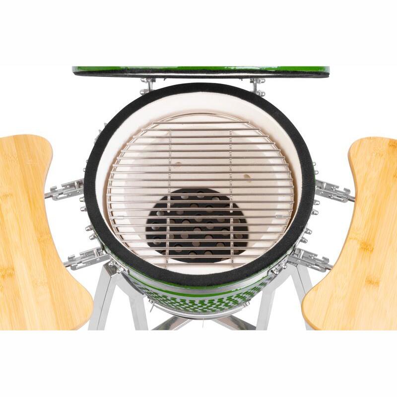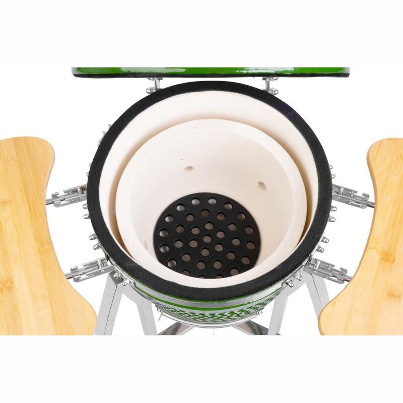 - Szorosan fedő - A grill 110 °C és 700 °C közötti hőmérsékletet ér el, és rendkívül kis mennyiségű üzemanyagot fogyaszt (akár 50%-kal kevesebb szenet, mint a hagyományos grillek).