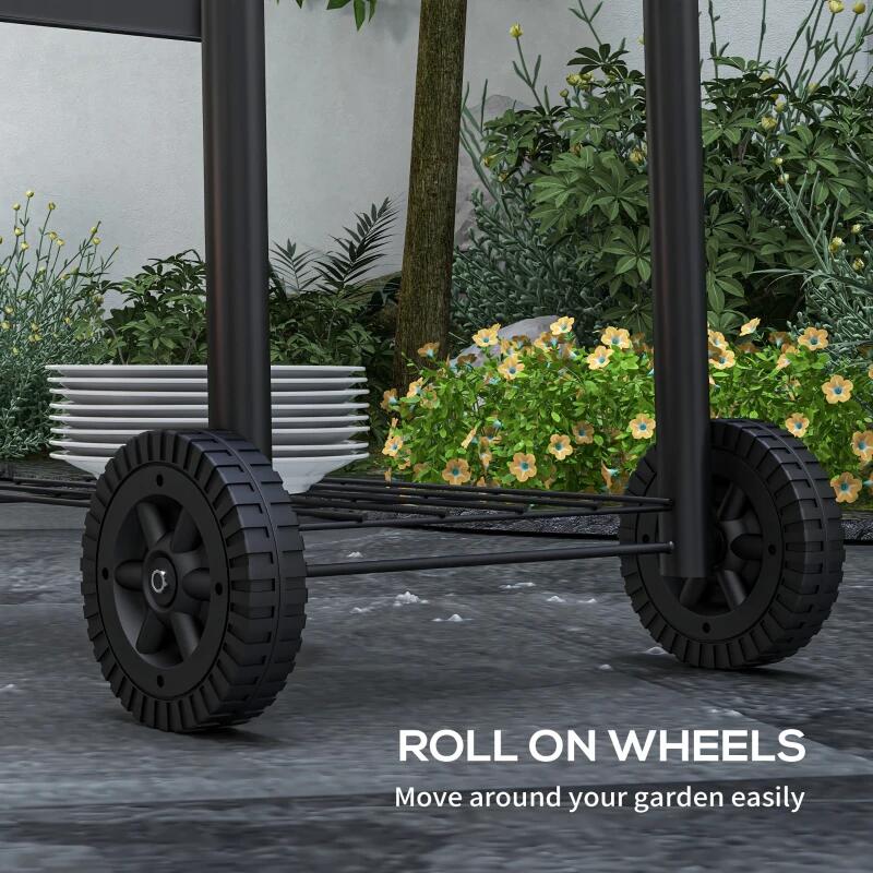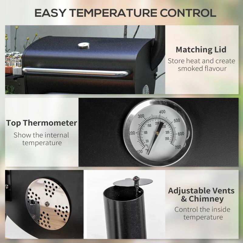 Faszén kerti grill, téglalap alakú grill, kerekekkel, fedéllel, fűszertartóval, 43,5 cm, 83x46,5x115 cm