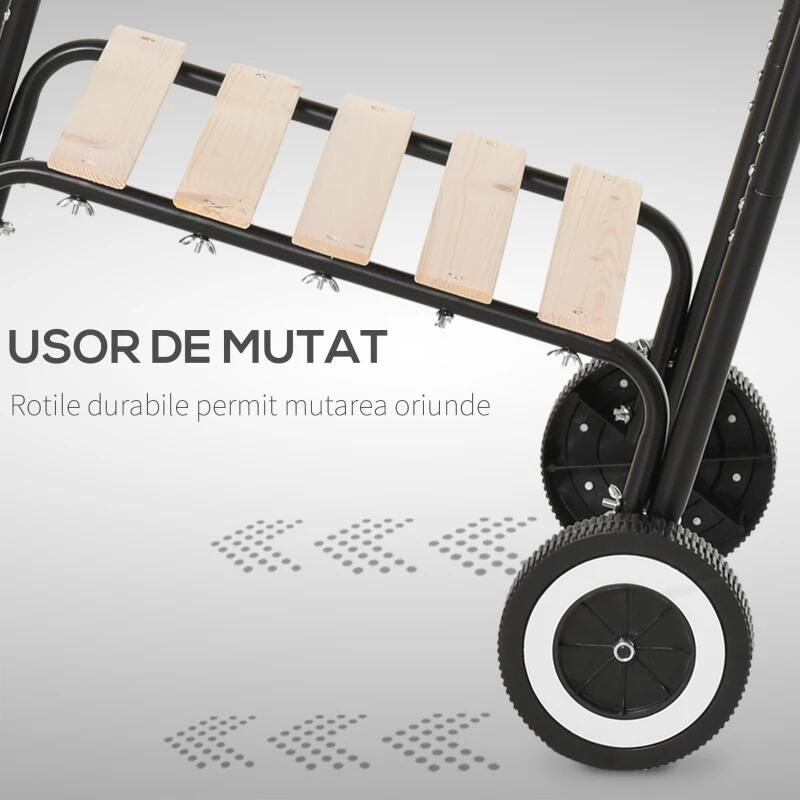 - Nagyon nagy tárolóhelyet kínál a két oldalsó polcnak és az alsó polcnak köszönhetően. Az oldalsó polcokon tányérokat, fűszereket, főzőedényeket és egyéb konyhai kiegészítőket helyezhet el, amelyeket kéznél szeretne tartani. Az alsó polcon például tűzifát vagy szénzsákot tárolhat.