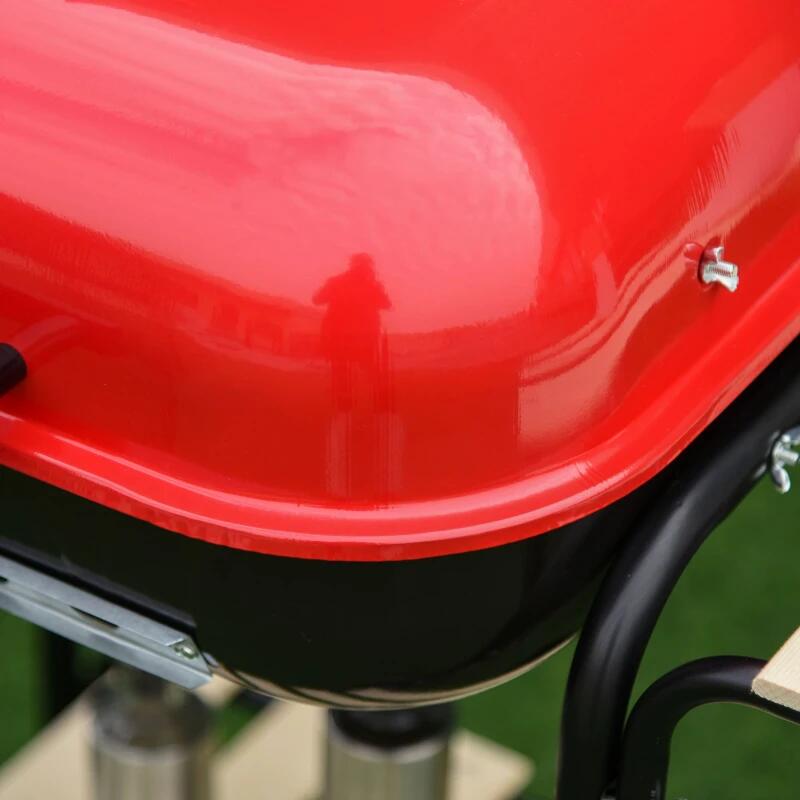 Faszén kerti grill, téglalap alakú grill, kerekekkel, fedéllel, polcokkal, 43 cm, 98x49x81 cm