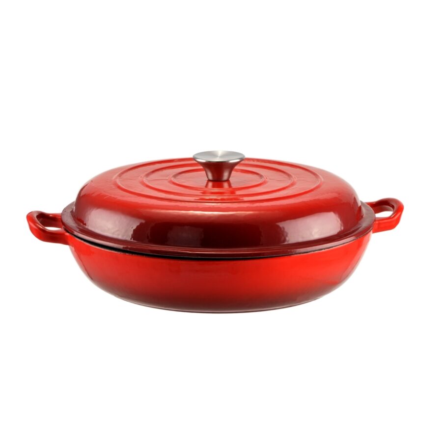 - A robusztus kialakítású zománcozott öntöttvas serpenyő különleges hőállóságot és annak egyenletes eloszlását kínálja, így biztosítva a tökéletes főzést.