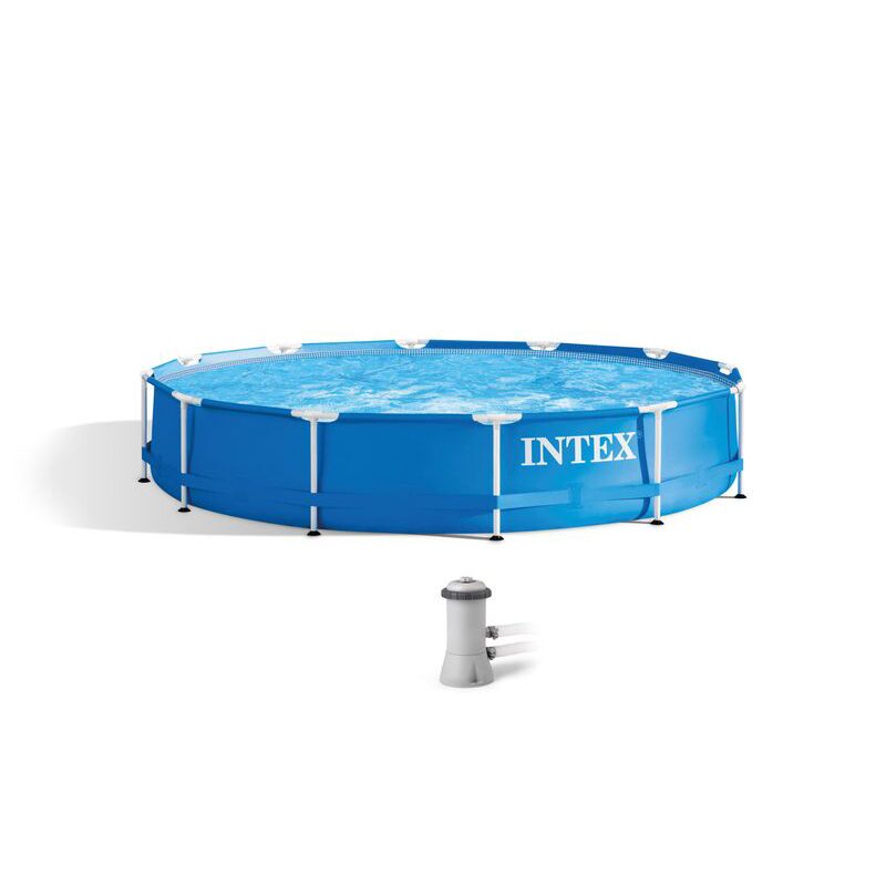 Fém szerkezetű medence, kerek, szűrővel, pumpával, kék, 366x76 cm, Intex fémváz