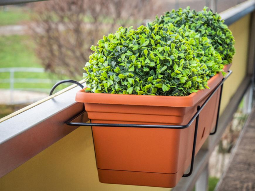 - A hátsó kampók az erkélyre vagy korlátra való könnyebb rögzítéshez szolgálnak.