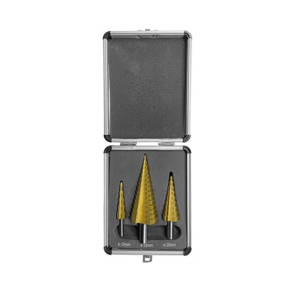 Fémfúró, lépcsős, titán, alumínium készlet, 3 darabos készlet, 4-12 / 20/32 mm, Strend Pro