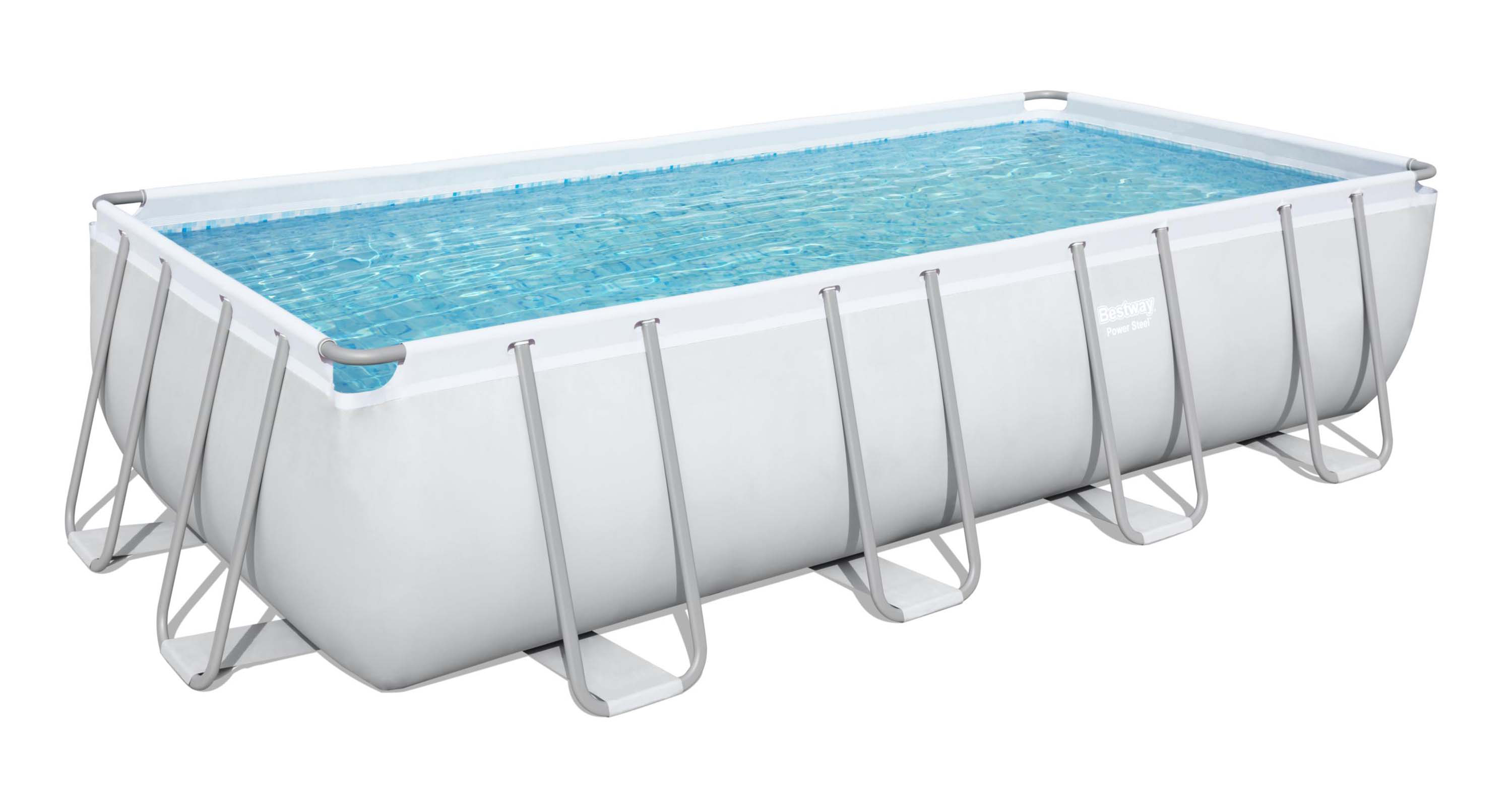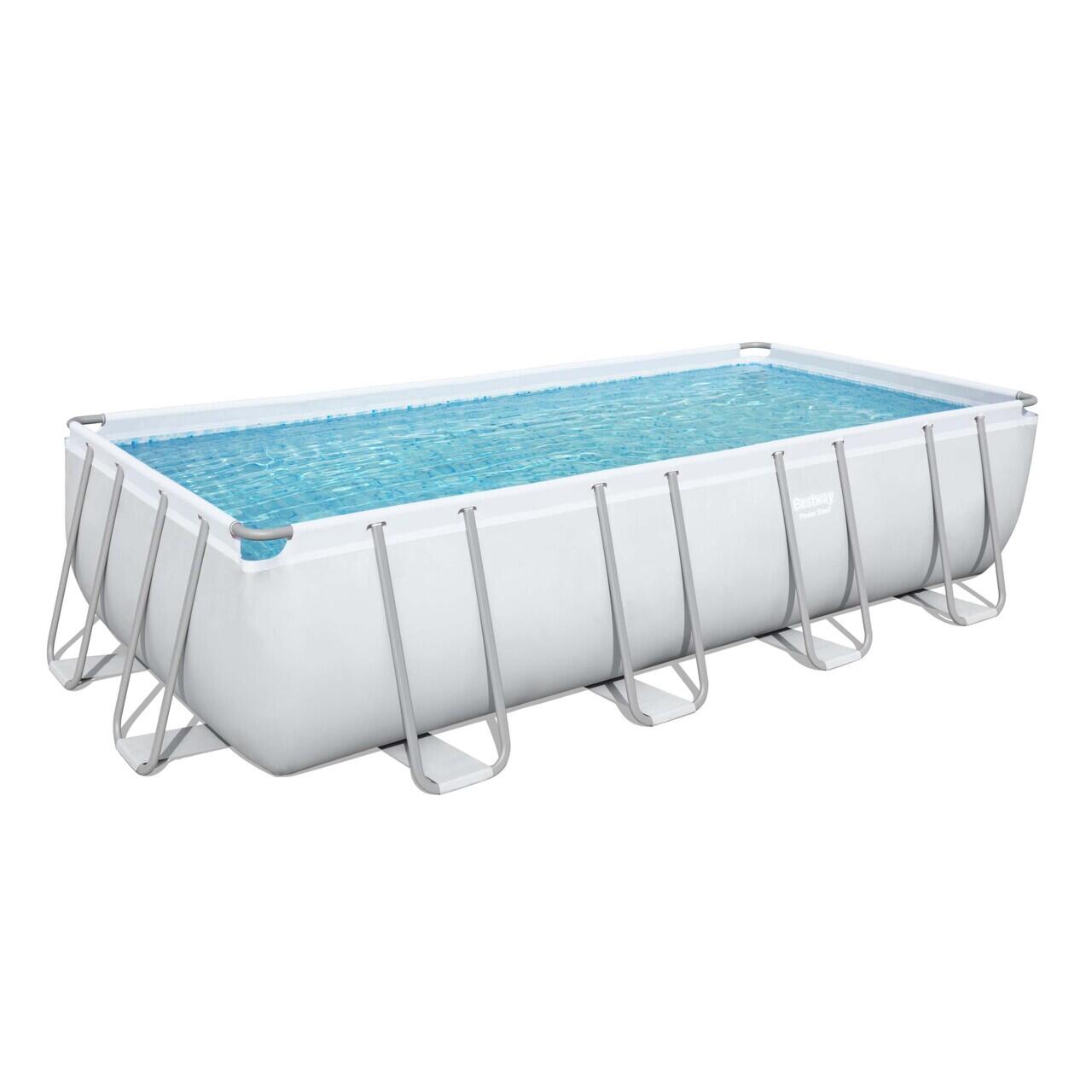 Fémszerkezetes úszómedence, téglalap alakú, homokpumpával, létrával, adagolóval, ponyvaburkolattal, szürke, 549x274x122 cm, Bestway Power Steel