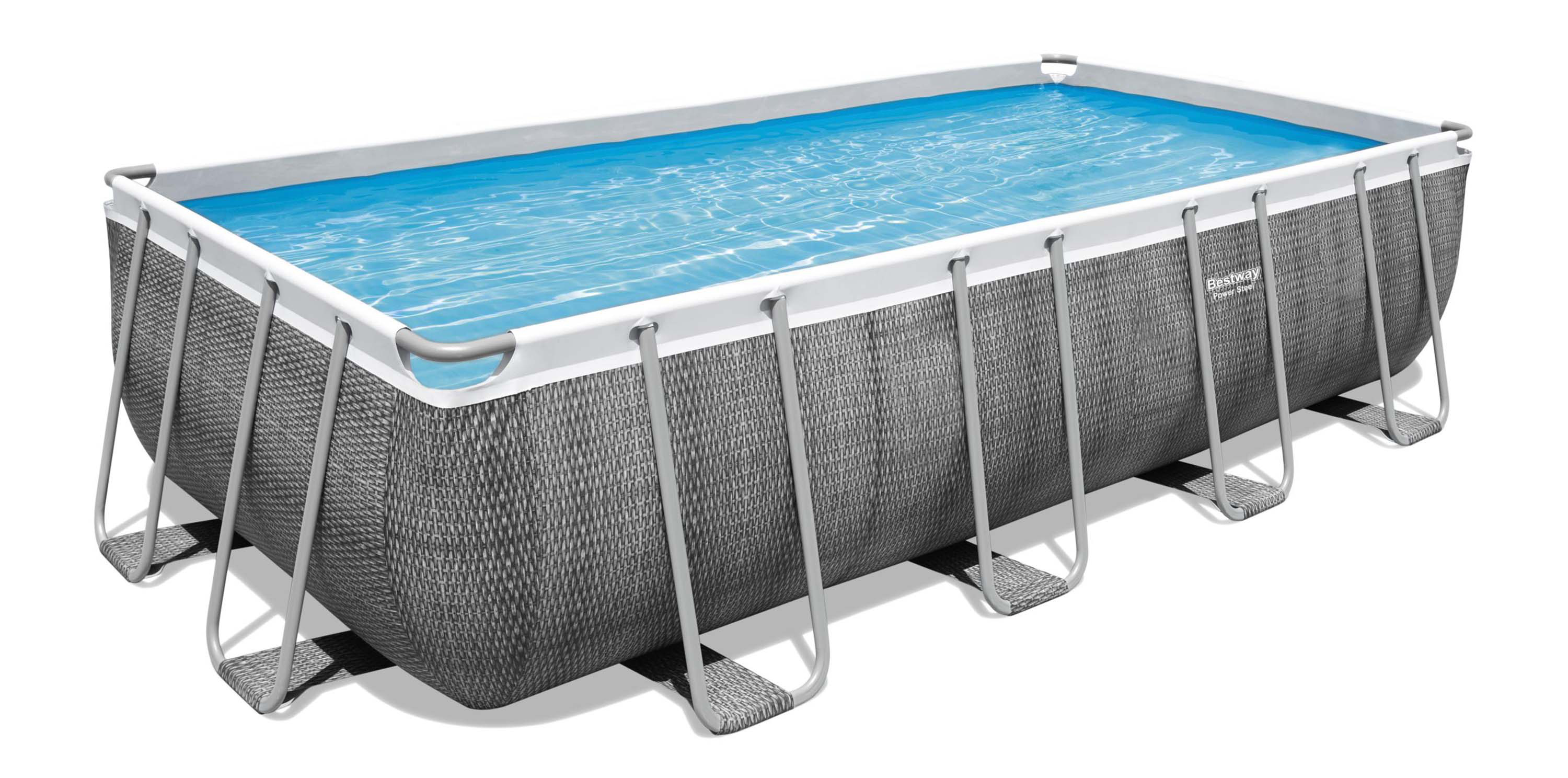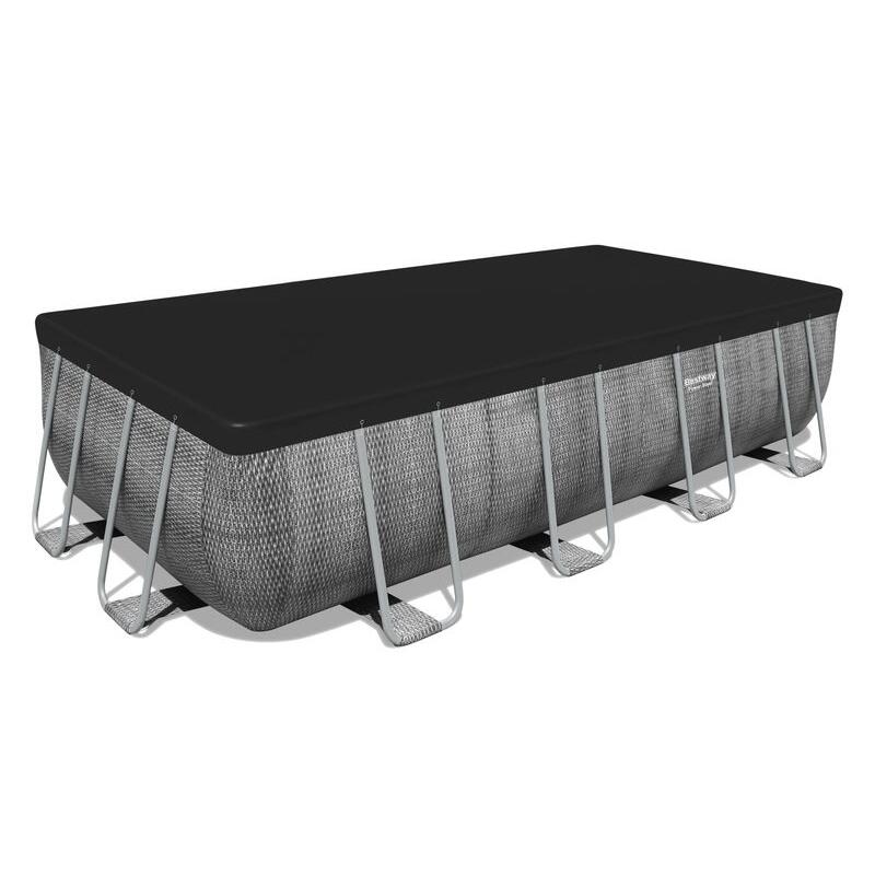 Fémszerkezetes úszómedence, téglalap alakú, szűrővel, pumpával, létrával, adagolóval, ponyvaburkolattal, szürke, 488x244x122 cm, Bestway Power Steel