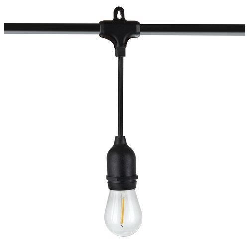 A füzér típusú izzósor teljes hossza 10 m, és 20 darab 4 cm átmérőjű izzót tartalmaz. A hagymák közötti távolság 50 cm.