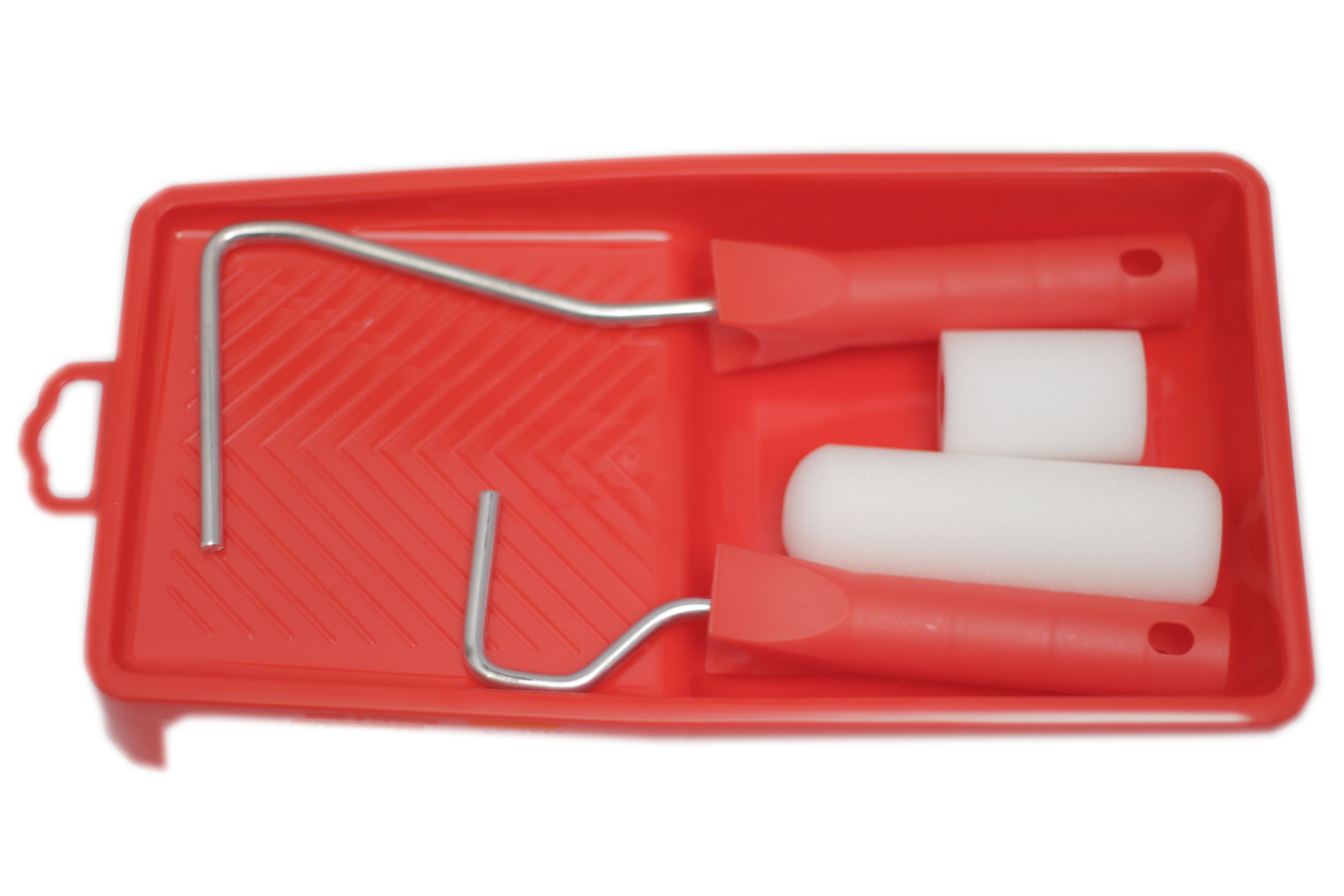 15-ös festőkészlet, 2 szivacstekercs, 2 fogantyú Hígító alapú festékekhez ajánlott festőkészlet. Tartalma: Tálca: 15x32 cm Fogantyú: 26 cm Fogantyú: 19 cm Szivacshenger ellenáll a d ...
