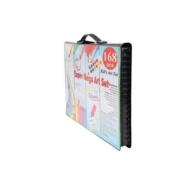 -  168 ELEM - 24 színes ceruza, 24 marker, 48 olajpasztell, 48 viaszpasztell, 12 akvarell festék, hegyező, ragasztó, korrektor, radír, A4-es lapok hatalmas választékával könnyedén elkészíthetjük a kifinomultabb, kreatívabb és eredetibb alkotások.