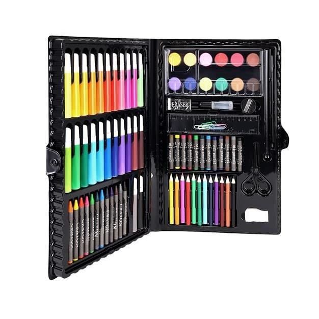 Festő és rajzkészlet gyerekeknek, fekete műanyag készlet, 86 db, Isotrade