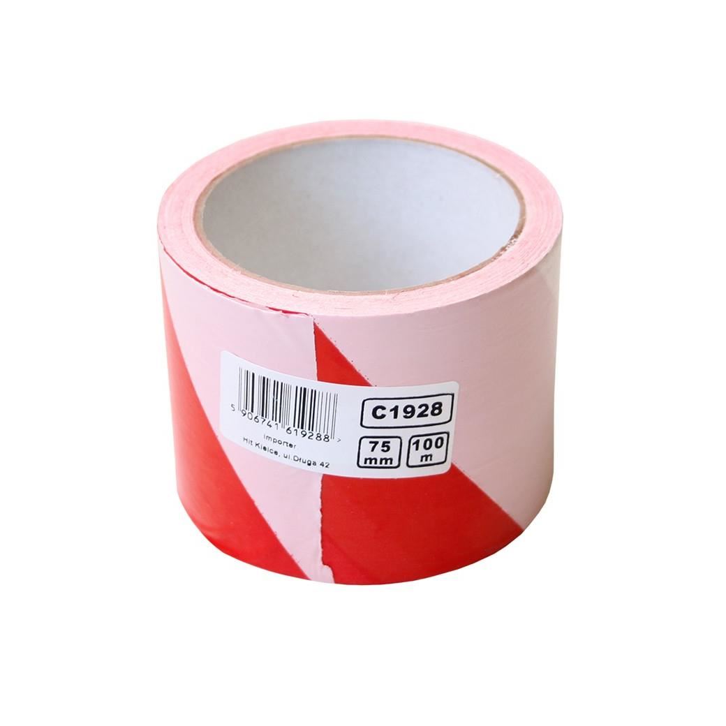 Figyelmeztető szalag, fehér-piros, 75 mm x 100 m, RICHMANN