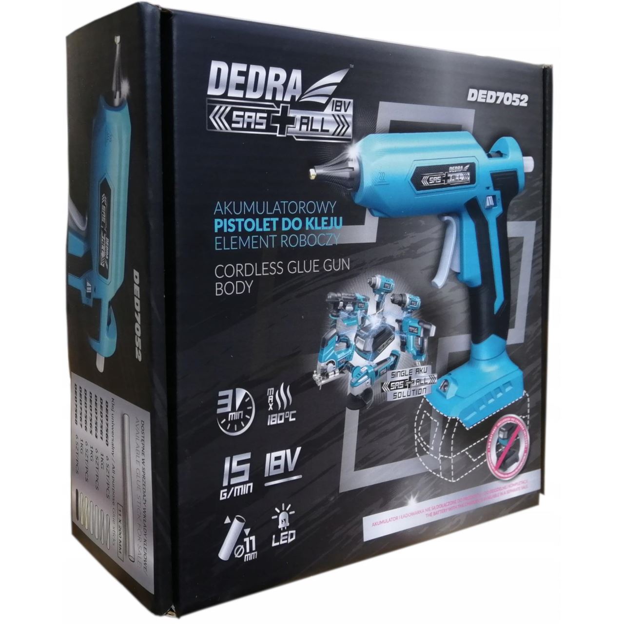 Forrasztópisztoly szilikon rúddal, 18 V Li-ion (akkumulátor nem tartozék), 11 mm, SAS + ALL, Dedra