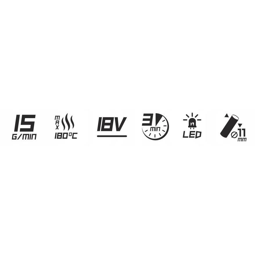 Gyors felfűtési idő - 3 perc, ami 180 Celsius fokos maximális hőmérsékletet tesz lehetővé, biztosítva a ragasztó rövid időn belüli megfelelő olvadását.