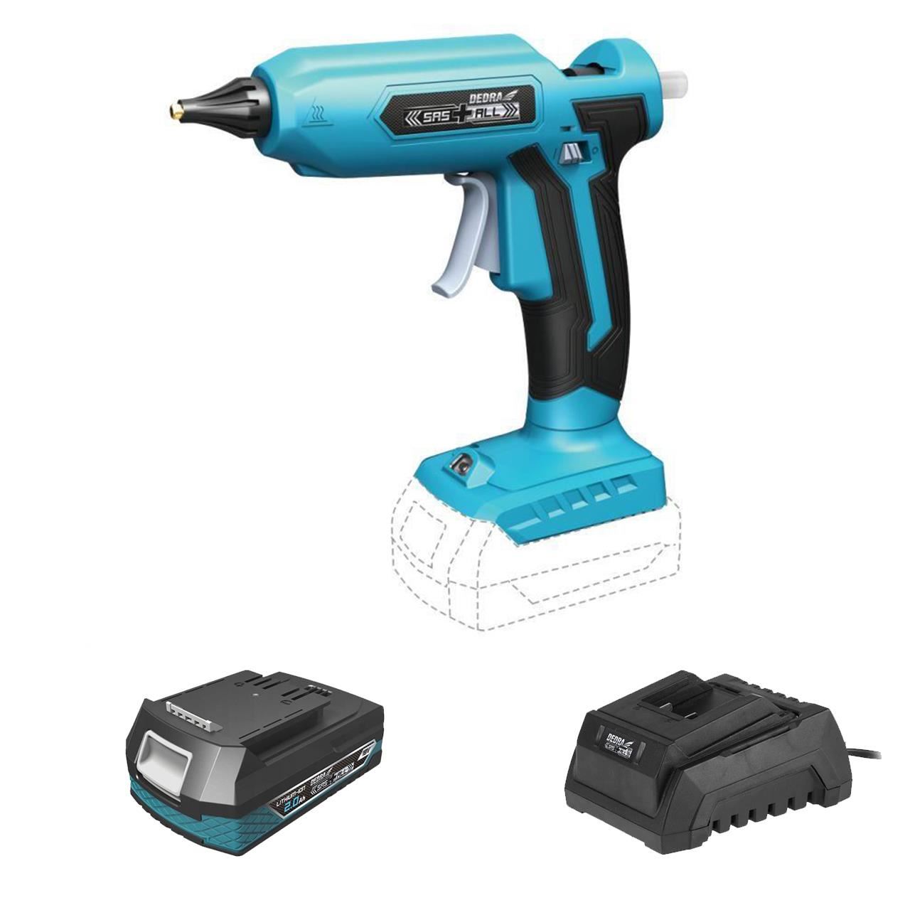 Forrasztópisztoly szilikon rúddal, 2 Ah akkumulátorral, 18V Li-ion töltővel, 11 mm, SAS + ALL, Dedra