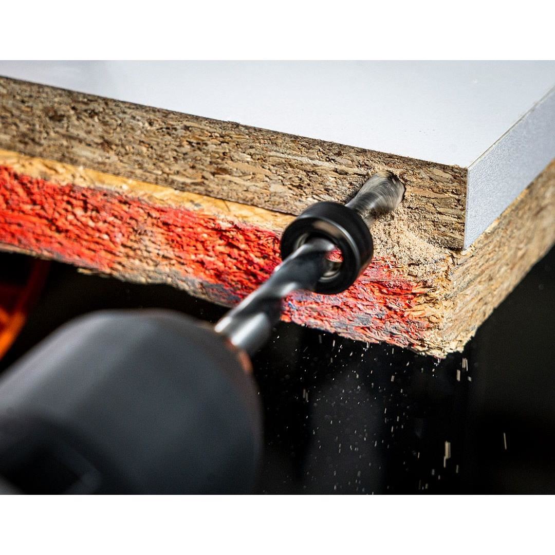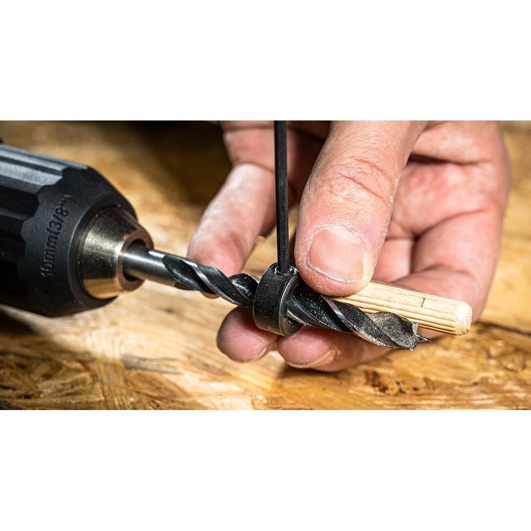Az univerzális ízületi készlet 43 praktikus elemből áll. A három különböző átmérőjű (6, 8, 10 mm) tiplik mellett a termék három külön fúrószárat, mélységütközőt és jelölőt kínál a fúrás helyének jelzésére.