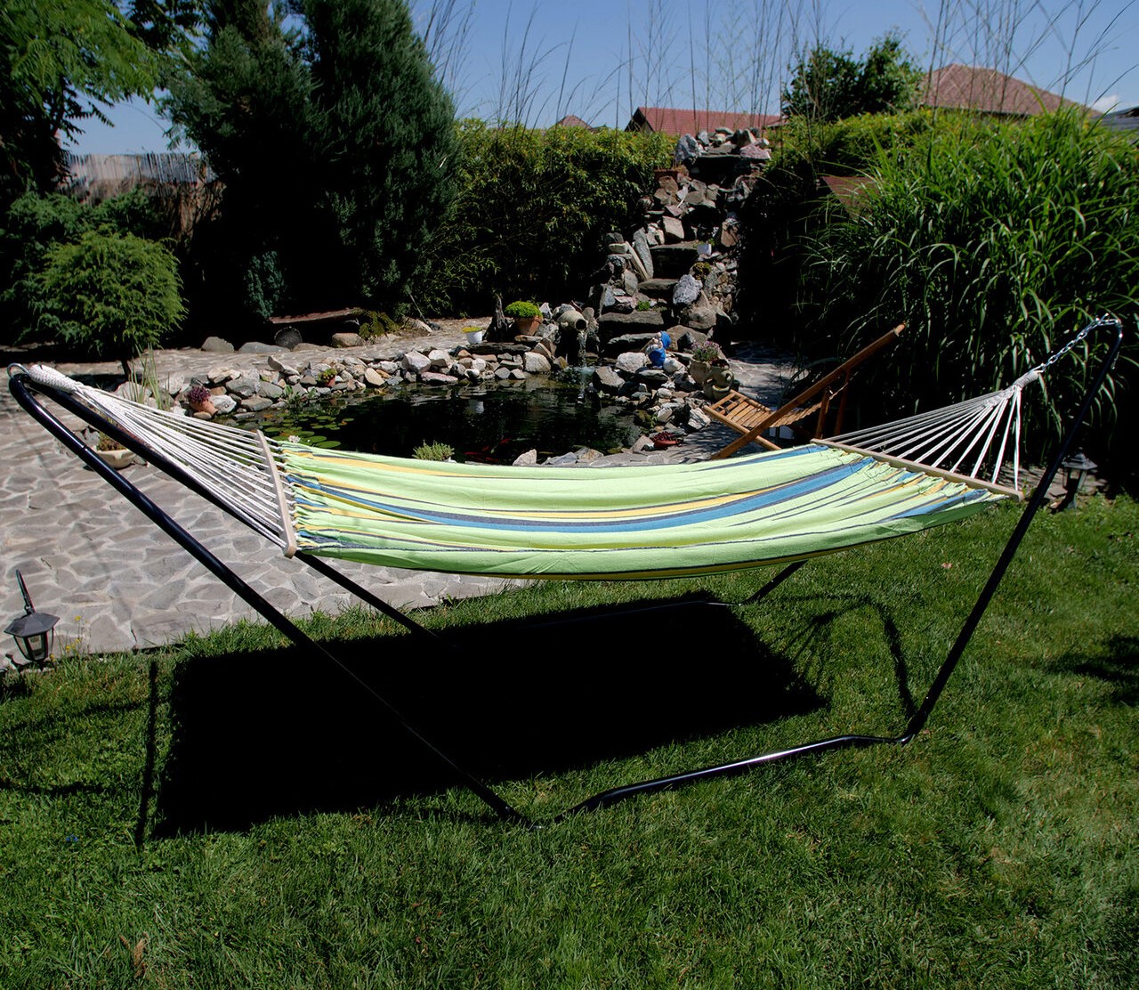 - Anyaga acélból készült, így időtálló, könnyen felszerelhető, és a támasztéknak köszönhetően a függőágy könnyen mozgatható bármilyen helyre.