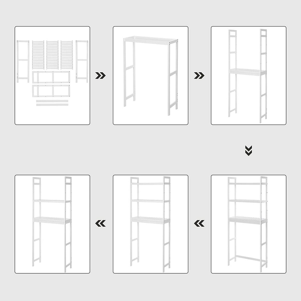 Fürdőszoba polc, Artool, bambuszfa, 3 polc állítható magasságú, fehér, 63x26x163 cm