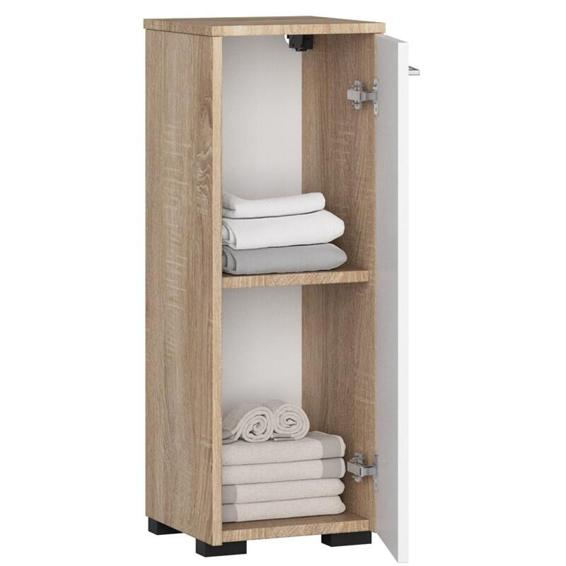 Fürdőszoba szekrény, laminált lap, 2 polc, fehér és Sonoma tölgy, 30x30x85 cm