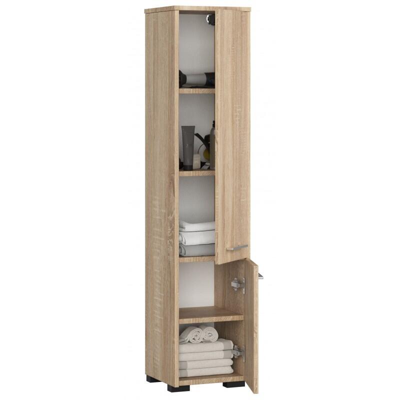 Fürdőszoba szekrény, laminált lap, 5 polc, 2 ajtó, Sonoma tölgy, 30x30x140 cm