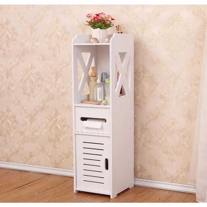 Fürdőszoba szekrény, Mufart, MDF lap, 2 polc, 1 fiók, 1 ajtó, fehér, 25x21,5x80 cm
