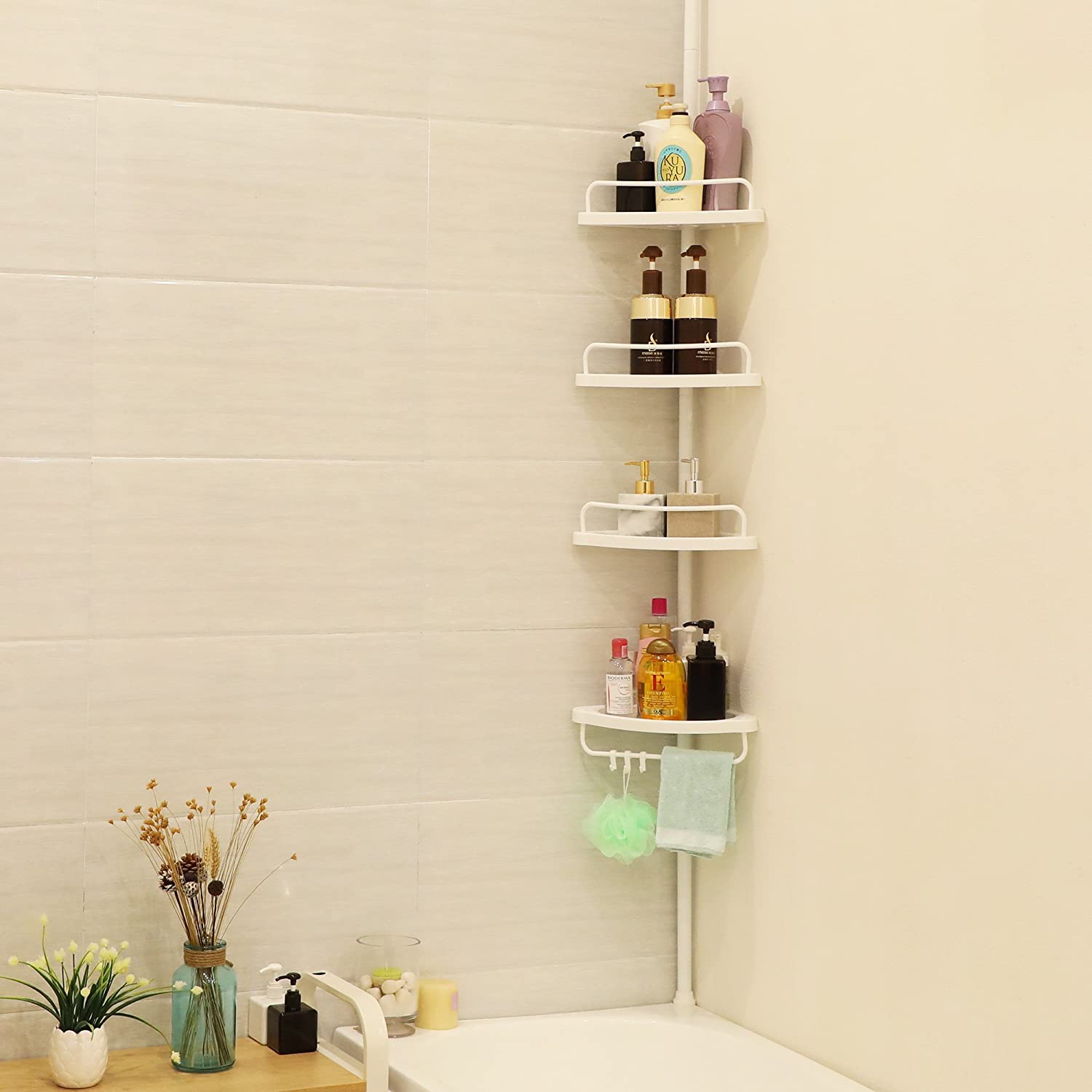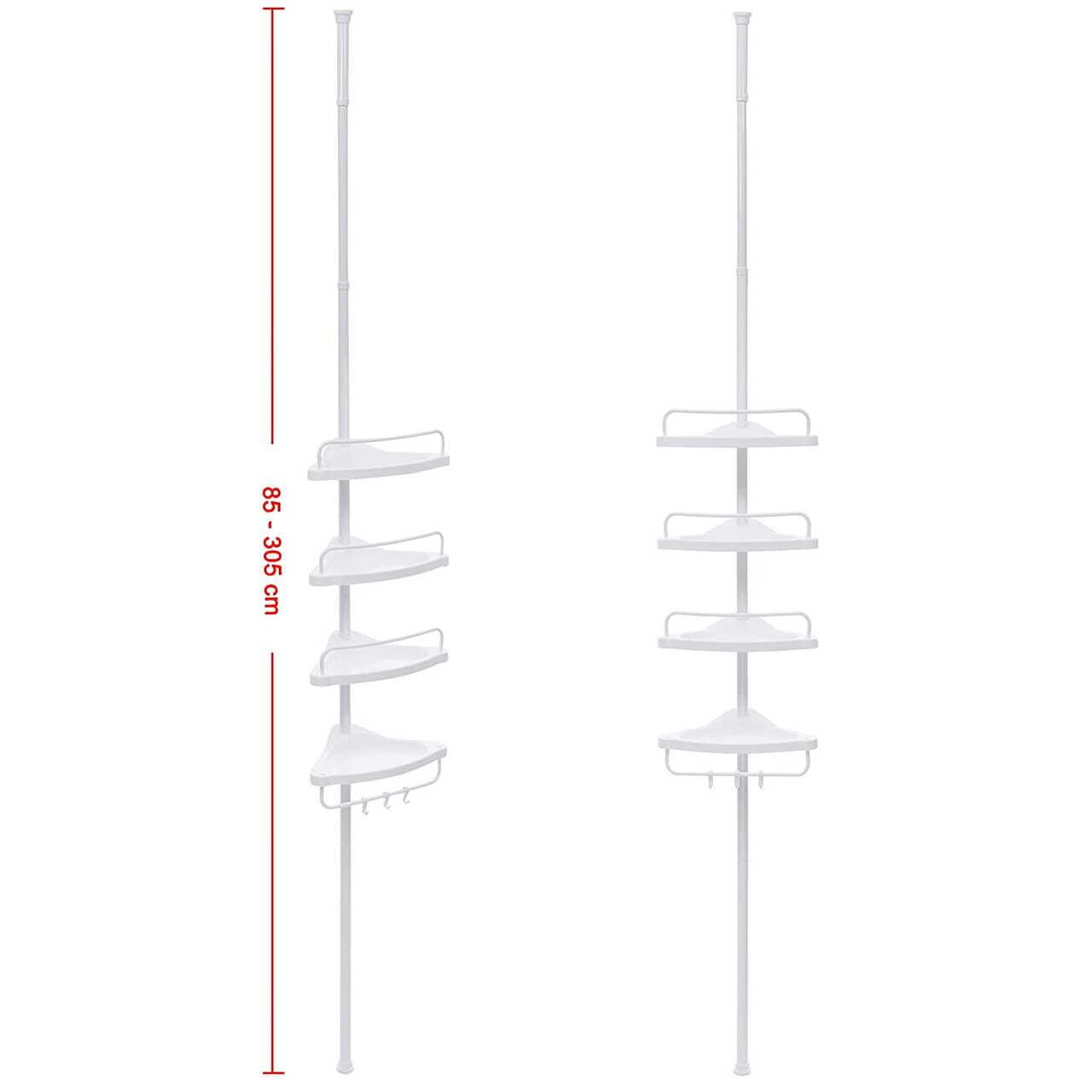Fürdőszoba/zuhany polc, Vasagle, állítható, rozsdamentes acél, 4 polc, fehér, 85-305 cm