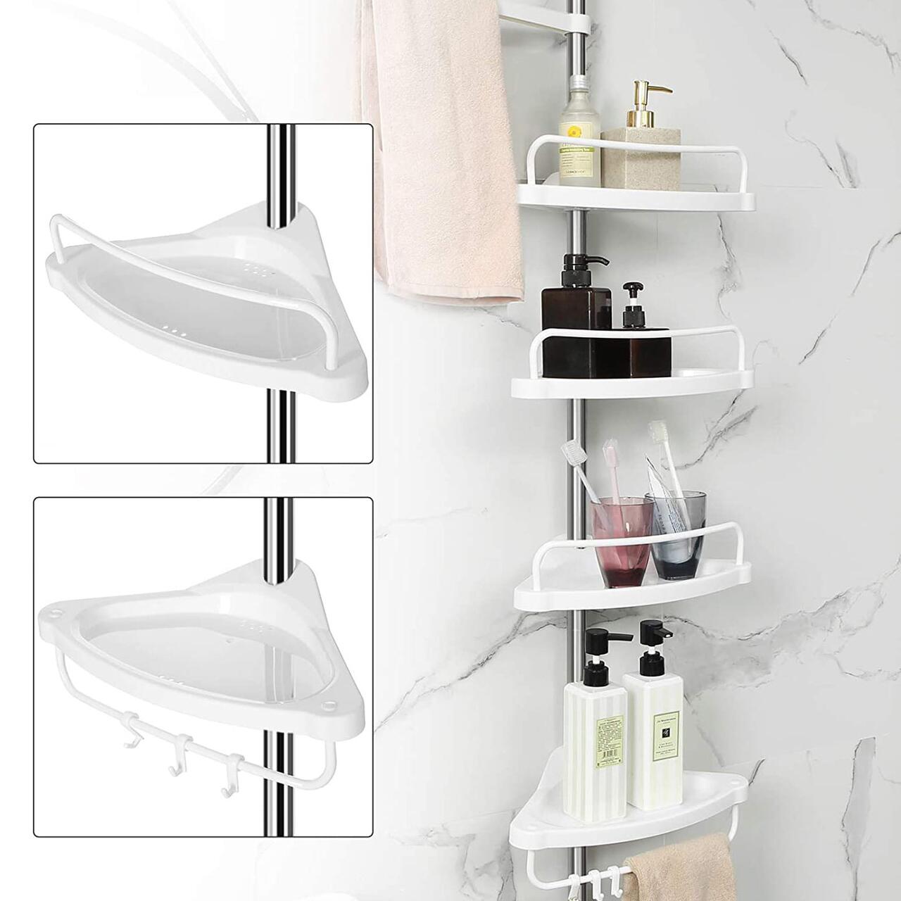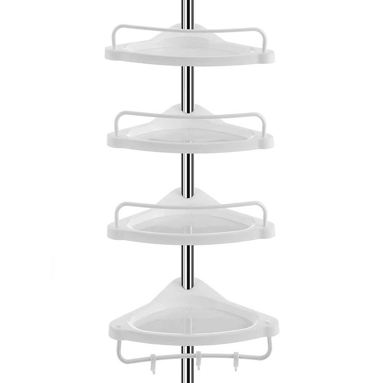 Fürdőszoba/zuhanypolc, Vasagle, állítható, acél, 4 polc, akasztó, 95-300 cm