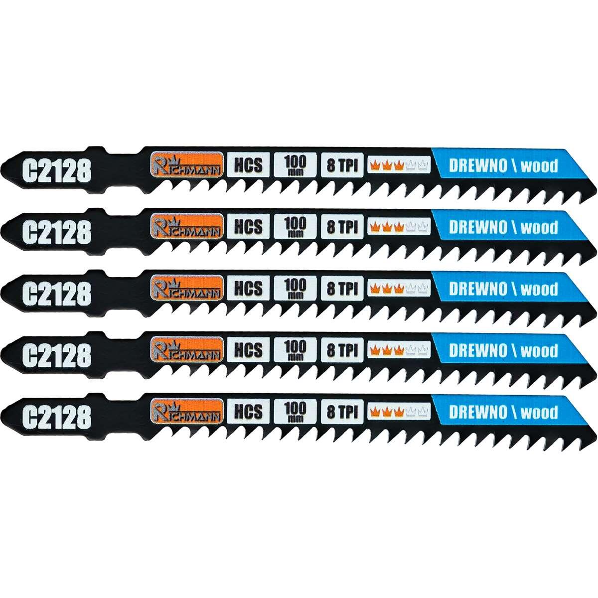 Fűrészlap, lengőfűrész, fához, HCS, T-típusú bilincs, 8 TPI, gyorsvágás, 5 db-os készlet, 100 mm, Richmann